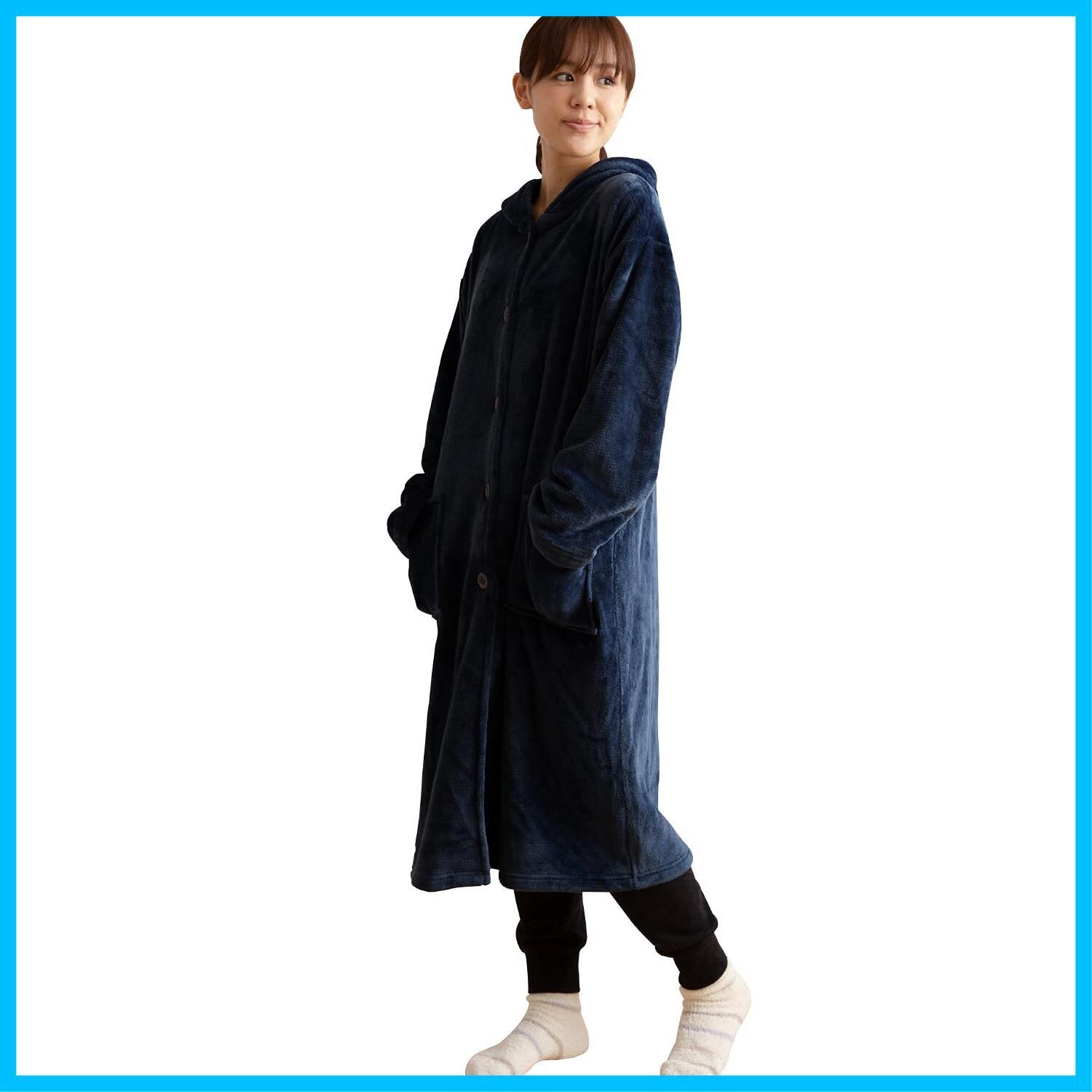 ◆◆ [アクア] mofua (モフア) 着る毛布 プレミアムマイクロファイバー (あったか 発熱タイプ +2℃) フードタイプ ルームウェア M (着丈110cm) 男女兼用 ダークネイビー 60156622 ◆