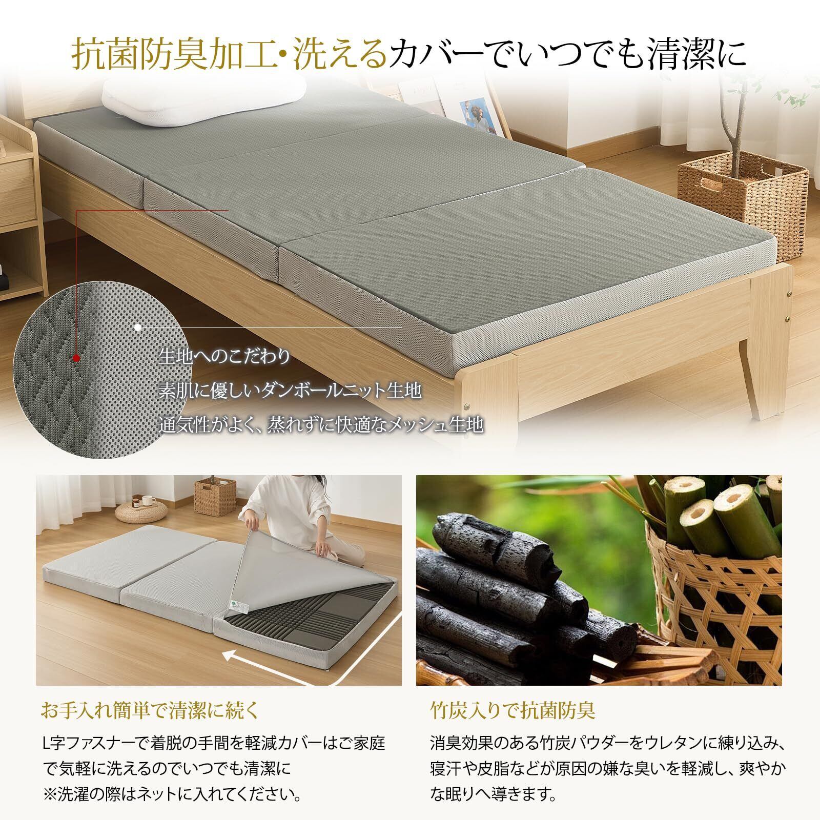 Softime マットレス シングル 3つ折り 極厚10cm 【硬め210N 高密度25D/32D 2層構造】 高反発マットレス 5年 【腰部徹底】 体圧分散 抗菌防臭 防ダニ 折りたたみマットレス 洗えるカバー 敷き布団 圧縮梱包 97x195cm グレー R1 | Lulu