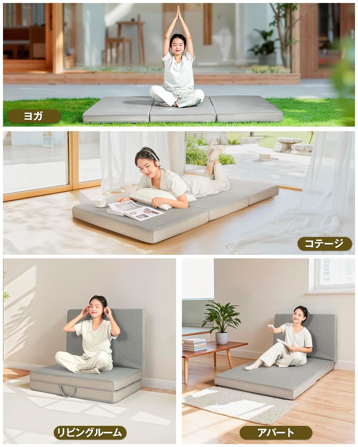 ◆◆KOJIHOMU 折りたたみマットレス 厚さ10cm【高反発 硬め190N 密度36D】 通気性 高反発折り畳み 体圧分散 腰痛対策 抗菌 防臭 ウレタン寝心地 敷布団 シングルサイズ アウトドア キャンプ 【グレー】◆◆