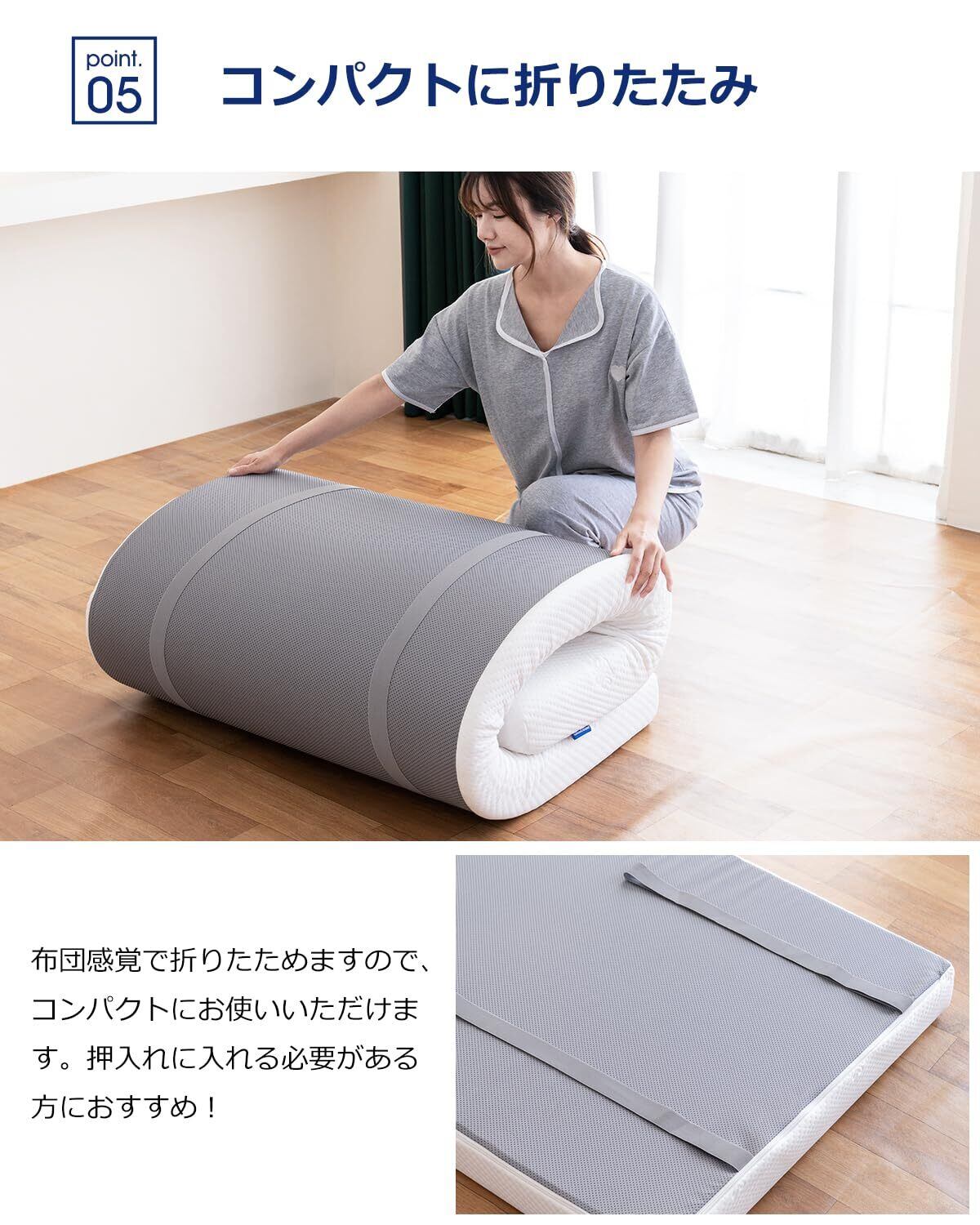 【リッチな寝心地】マットレスの厚みを約10cmにすることで、敷布団を必要とせず、畳や床に直接置いて使用する事が可能です。安定感のある高反発層は硬さ150Nもあり、横になった際に、体をふんわり押しあげてくれるようなリッチな寝心地となっています。朝までしっかり眠れる快眠マットレスです。