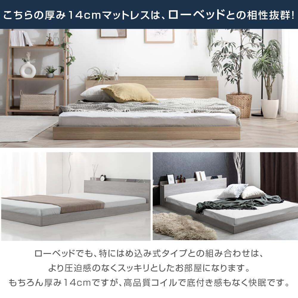 このマットレスは、厚み14cmの薄型設計ながら、416個のボンネルコイルを使用し、体をしっかりと支えます。均一な体圧分散を実現し、快適な寝姿勢をサポートします。腰痛や肩こりを和らげ、毎日の快眠を実現します!