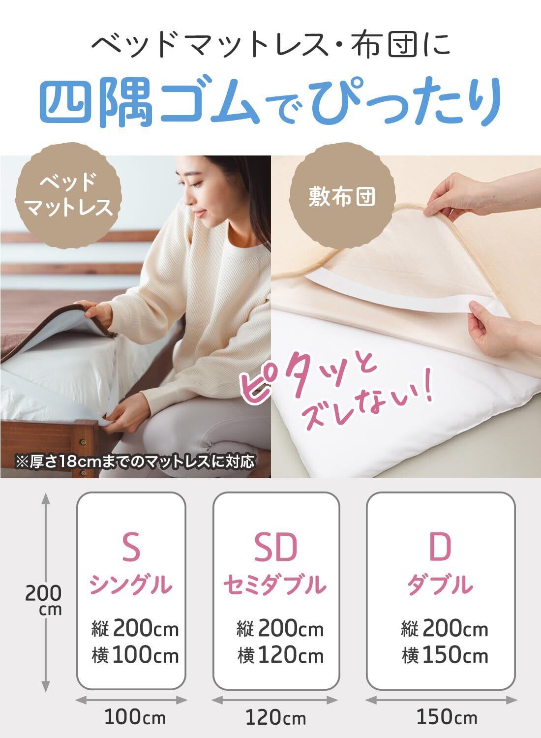 【丸洗い&乾燥機OK】洗濯ネットを使用すれば、洗濯機で丸洗い&乾燥機使用OK(上限60℃まで)!簡単に取り外し&洗濯できるので、汚れが気になったらサッと洗って乾かせます!お手入れしやすい家事ラク仕様です。 四隅のコーナーにはズレ防止のゴムバンドが付いているので寝返りをうっても安心です。洗濯したい時はさっと取れるので忙しい朝もスムーズで楽ちんです。