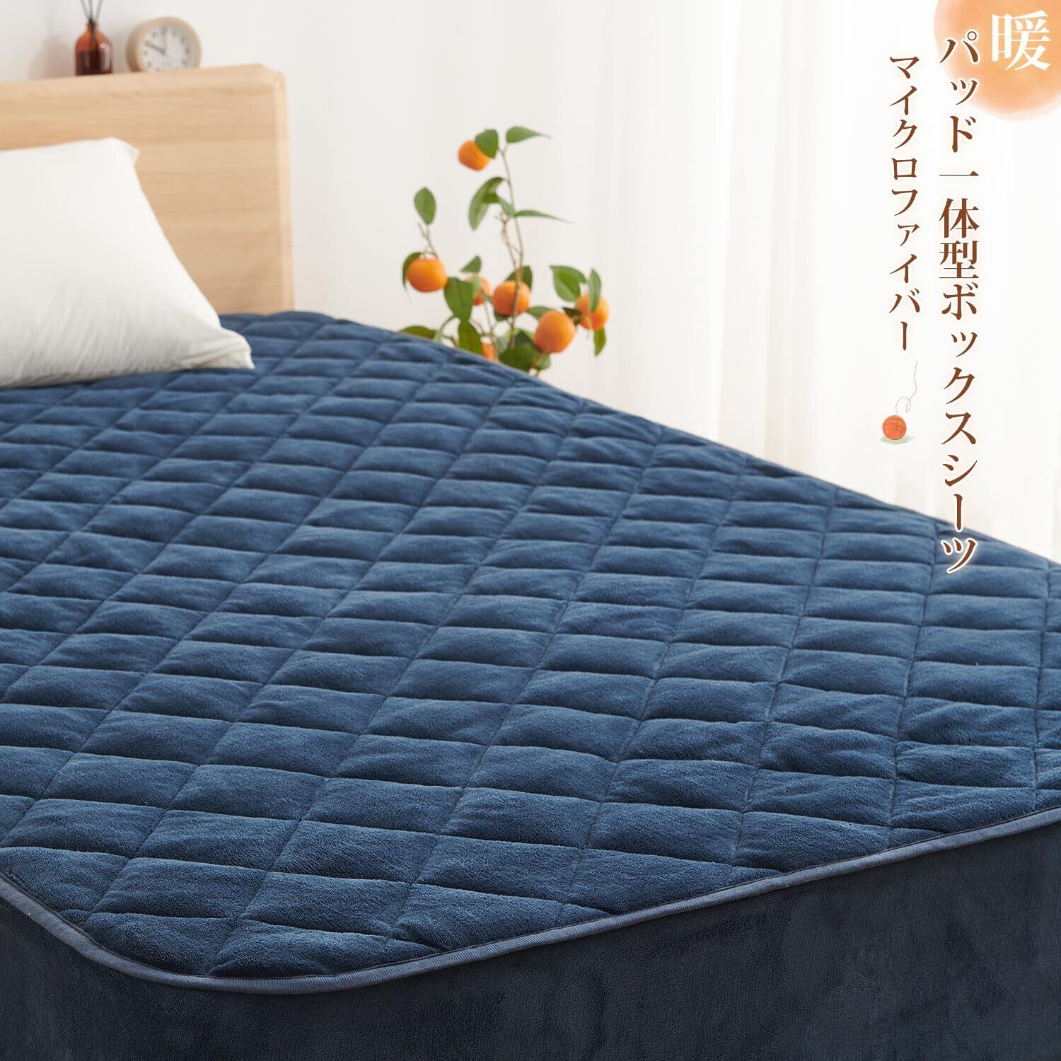 クモリ(Kumori) あったか パッド一体型ボックスシーツ シングル フランネル 極暖 吸湿発熱 秋冬用 ボックスシーツ 丸洗いOK 抗菌防臭 一枚2役 テイジン中綿使用 敷きパッド ベッドパッド シングル・100X200cm ネイビー | Lulu