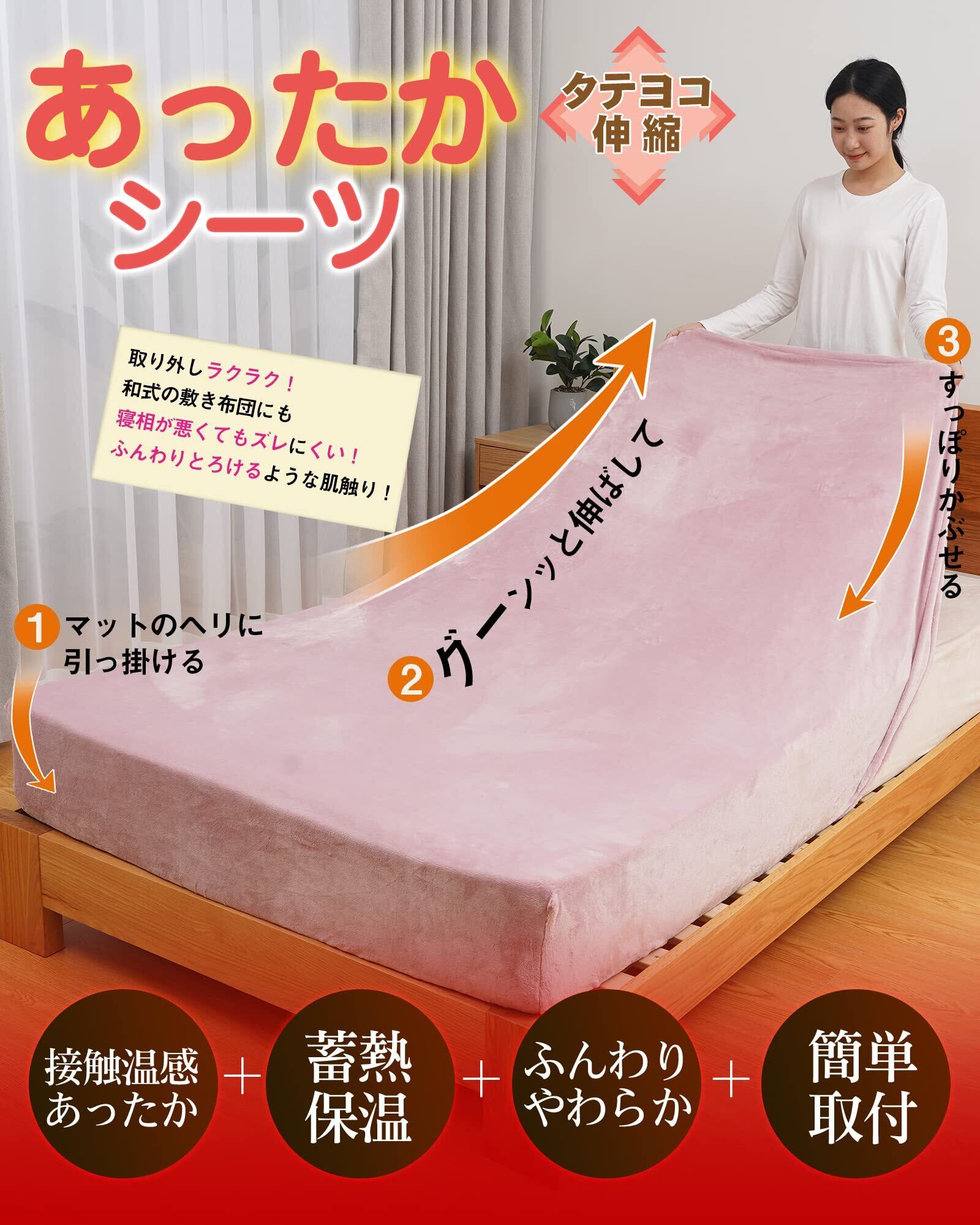 【暖かさ+2℃】あったか ボックスシーツ シングル 冬 暖かいシーツ ベッドシーツ ふわふわ 防寒 静電気防止 マイクロファイバー マットレスカバー ベッドカバー マットレス・敷ふとん兼用(シングル ピンク) | Lulu