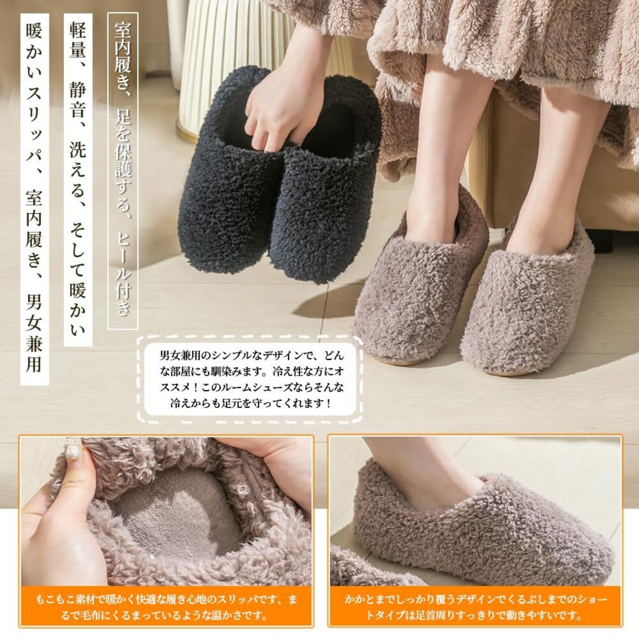 [XXG] スリッパ 冬 あったかスリッパ もこもこ 男女兼用 滑り止め 静音 ルームシューズ 室内履き 北欧 防寒 冬用 軽量 暖かい 洗える 足冷え対策 かかと付き