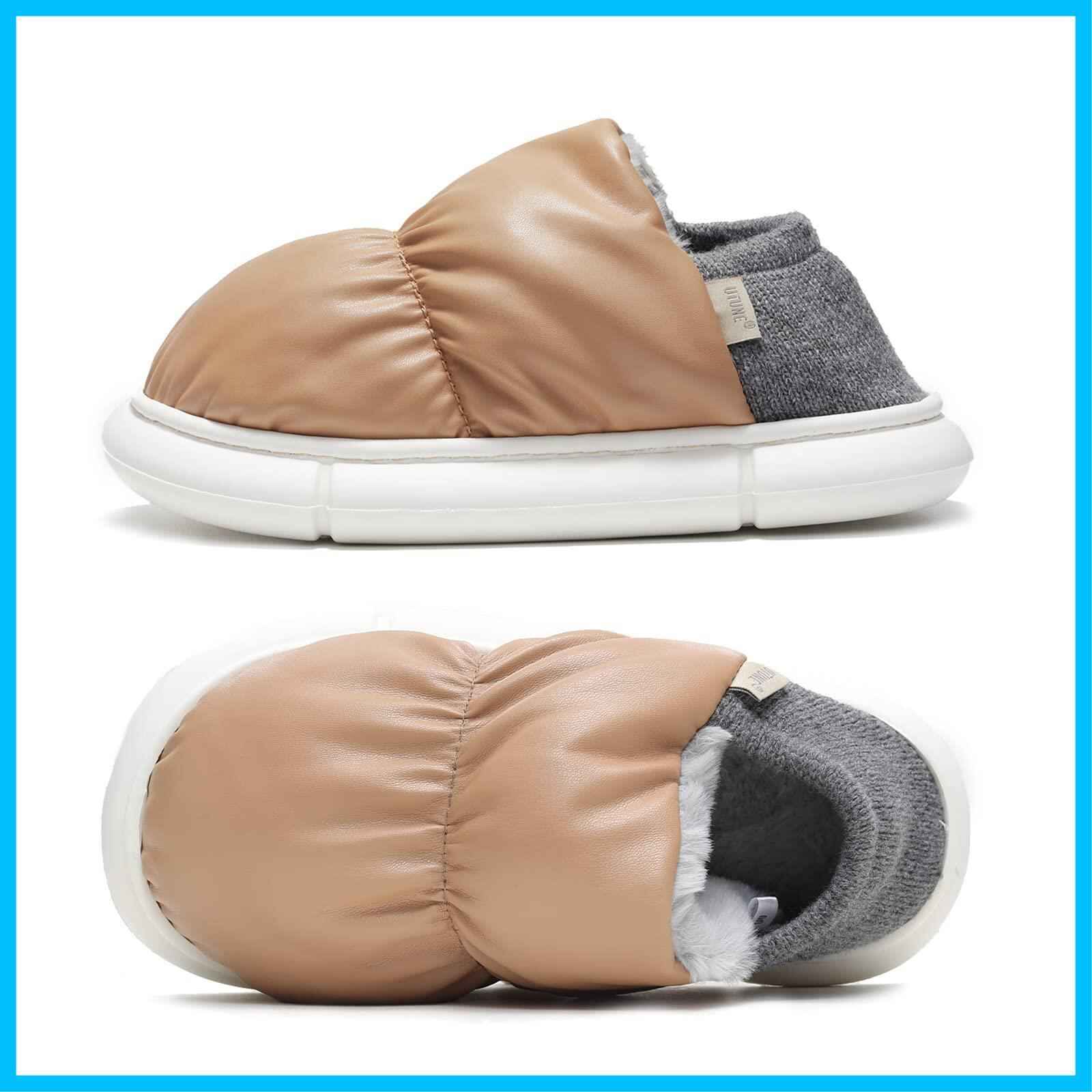 【良質な素材】:甲は防水性に優れたPUで、中敷きはふわふわのフェイクファーを採用します。動物愛護と同時に快適な履き心地を実現していました。ソールはEVA素材で、滑り止め効果がいいです。