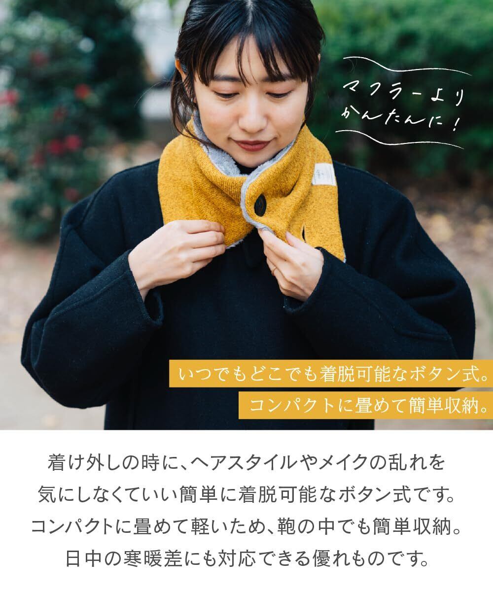 [ナコタ]のネックウォーマーは、寒い季節にぴったりなアイテムです。マイクロボア素材を使用した柔らかい触り心地が特徴で、ふんわりと首元を包み込み、心地よい暖かさを提供します。ボタン付きの前開きデザインは、着脱が簡単で、シーンに応じてスタイルを変えることができます。