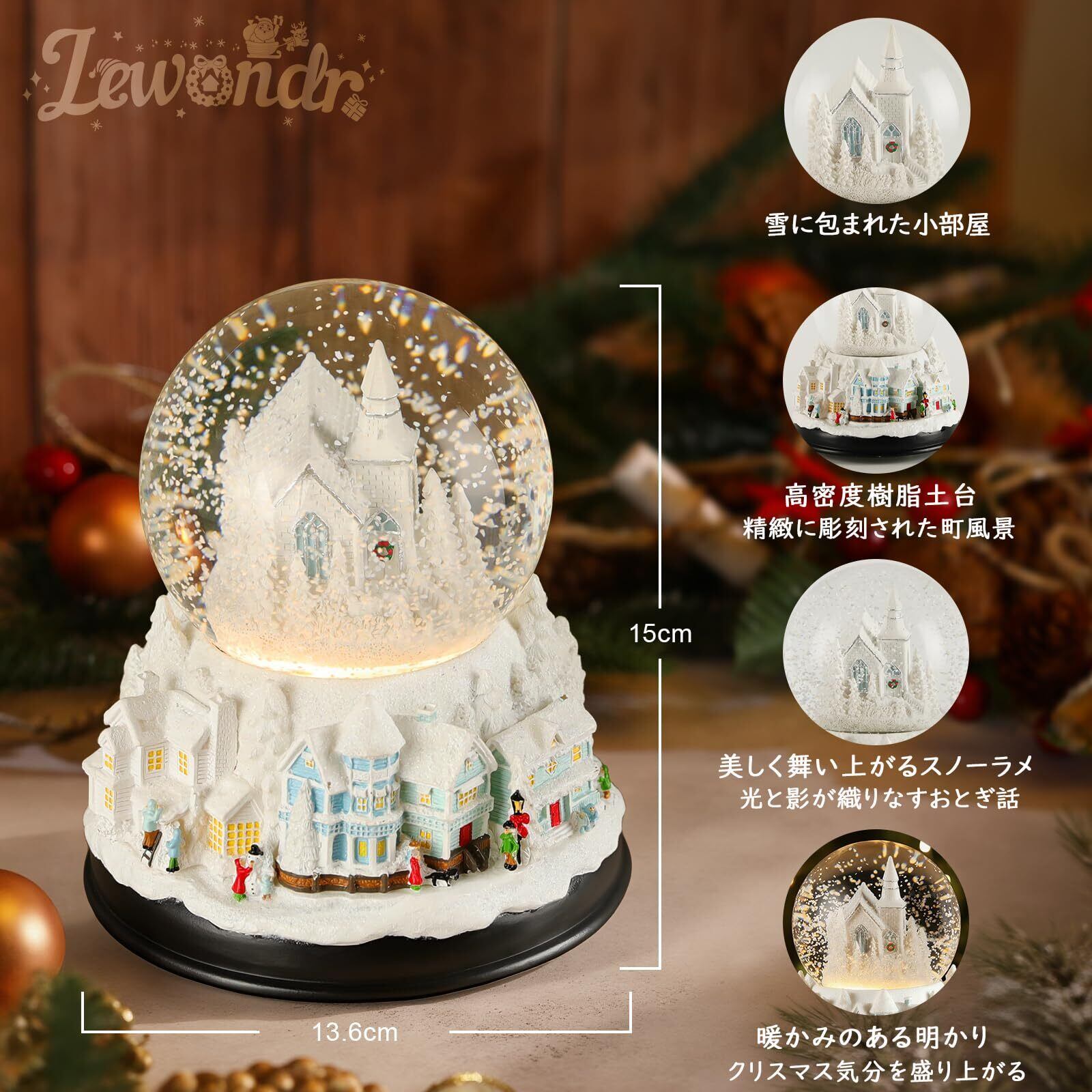 Lewondr スノーグローブ スノードーム LEDライト内蔵 クリスマスオブジェ インテリア 置き物 部屋装飾 冬の町