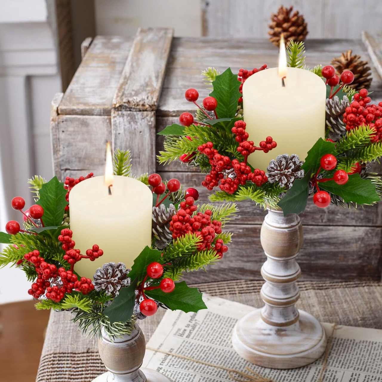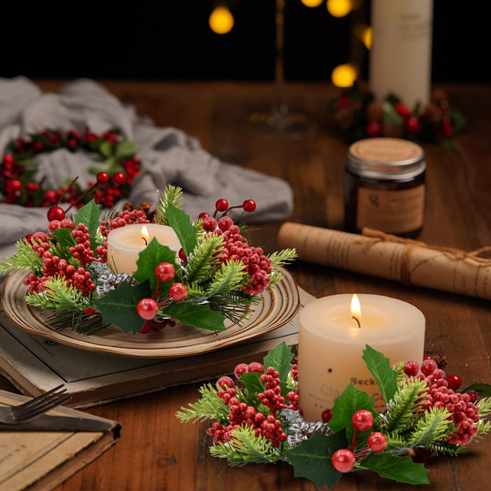 クリスマスリースセット内容:キャンドルリングセットは4個セットになり、様々なホームデコレーションに活用でき、祝日の生活に彩りを添えます。キャンドルオーナメントは十分な数量であらゆる装飾ニーズを満たし、理想的な美しい卓上置物としても最適です。