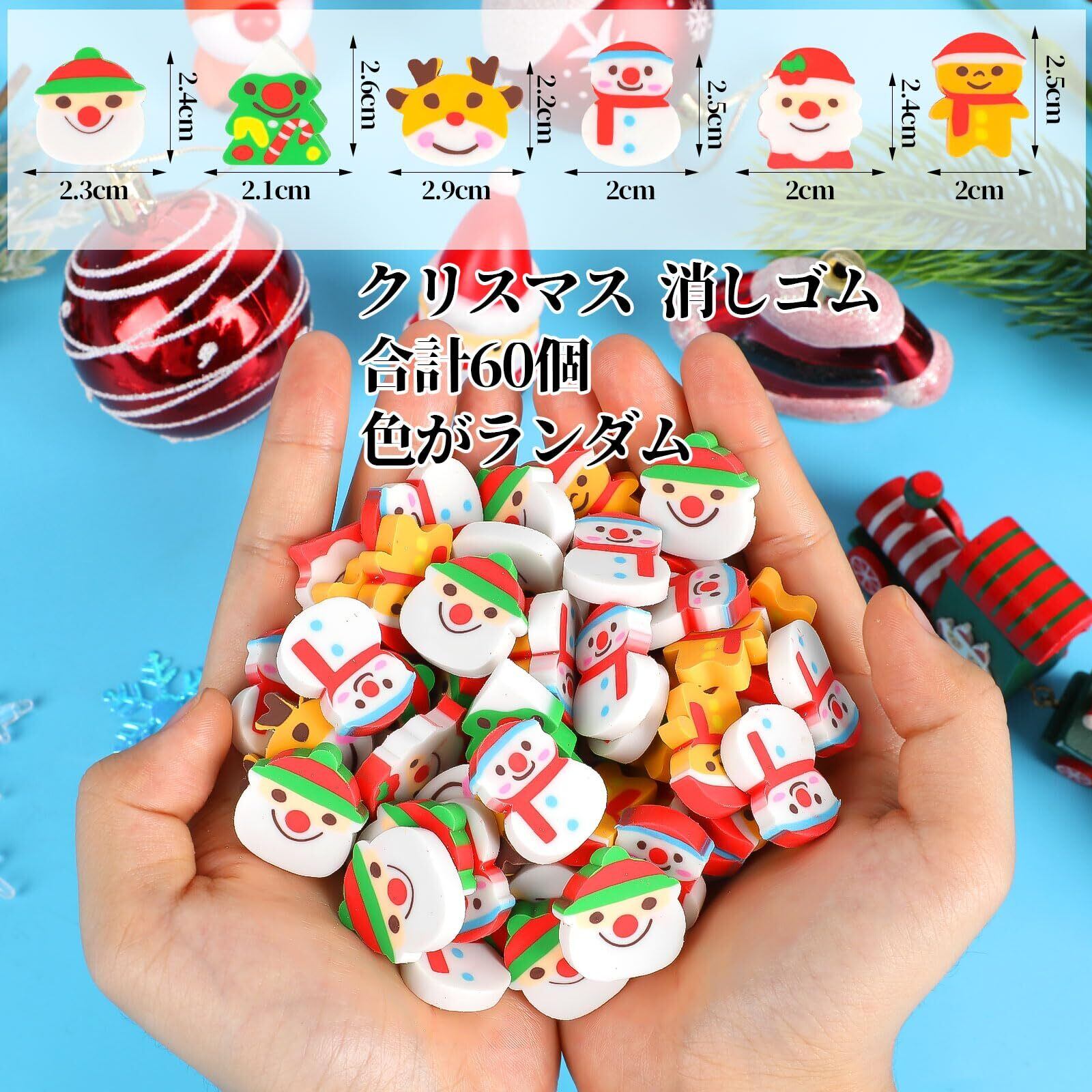 FINGOOO クリスマス 消しゴム 景品 60個入 教師用 ご褒美 縁日 イベント お祭り パーティー 文房具 記念品 プレゼント 教室 可愛い ミニ 6歳以上 (クリスマス)