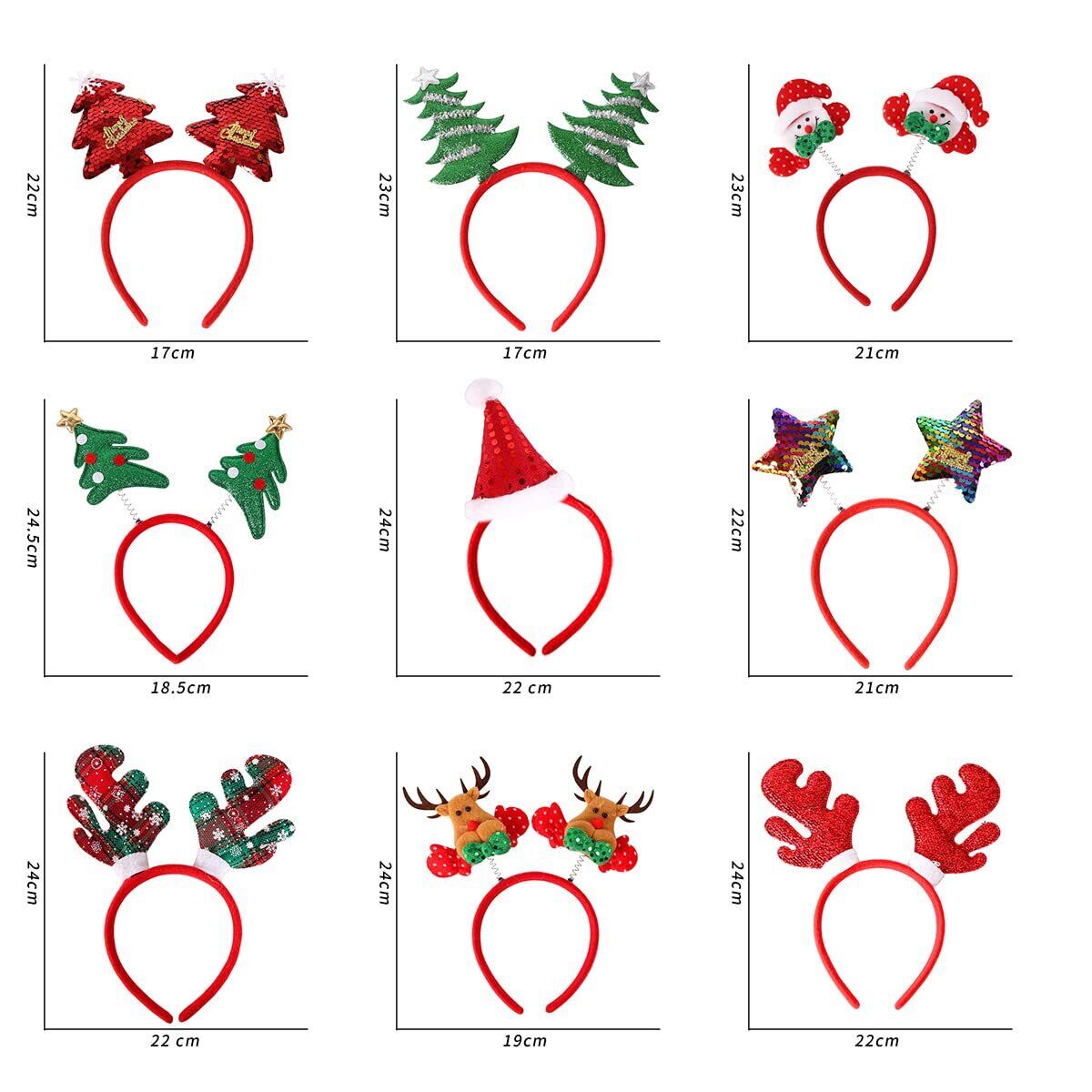 【クリスマス雰囲気を盛り上がり】:サンタクロース、トナカイ、サンタ帽子、雪だるまなどの9点雰囲気満点のカチューシャから、自分、ご家族や友達などは好きなものを選択でき、幸せなクリスマスの雰囲気をもたらし、素敵で魅力的な外観も与え、簡単にパーティーで目を引くことができます。