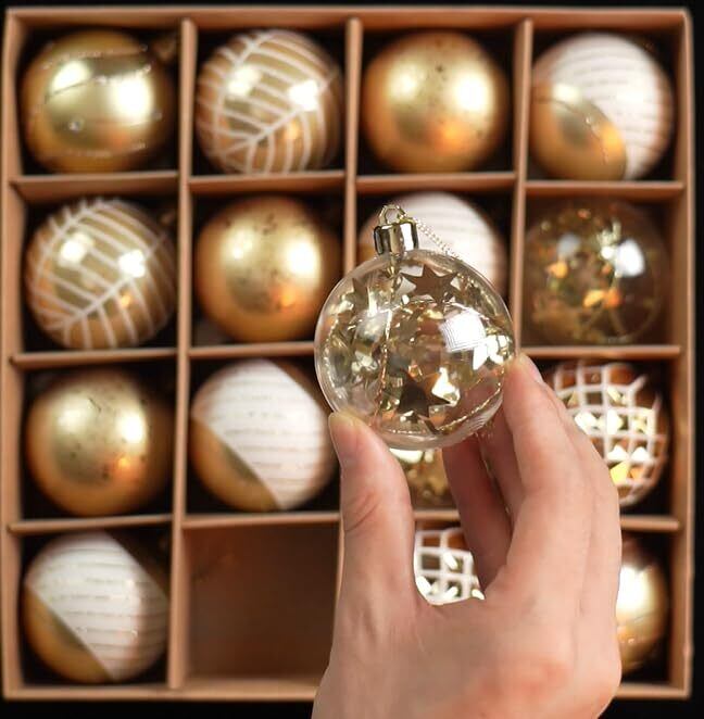Valery Madelyn クリスマス オーナメント 6cm 16個入り ホワイト ゴールド 白金 クリスマス ツリー 飾り 飾り付け プロポーズ 告白 結婚 店舗装飾 おしゃれ ゴージャス エレガント | Lulu