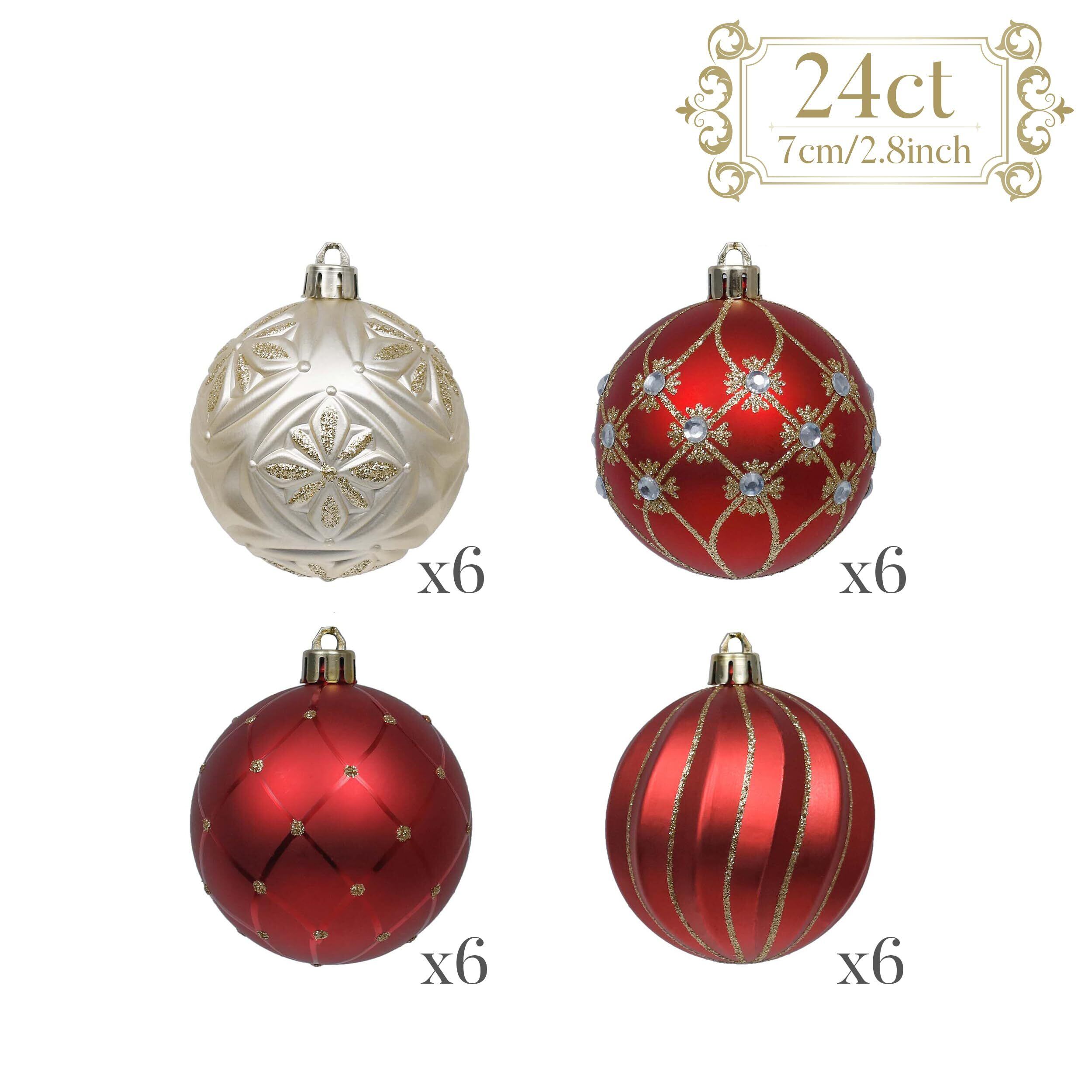Valery Madelyn クリスマス オーナメント 大きめ 7cm 24個セット クリスマス ツリー 飾り 吊り飾り 飾り付け 店舗装飾 プロポーズ 告白 結婚 おしゃれ ゴージャス レッド 赤 | Lulu
