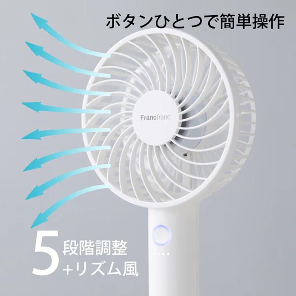 ◆◆2025年モデル Francfranc フランフラン フレ ハンディファン ホワイト 携帯扇風機 5段階風量調整 充電池 USB充電 Type-C 対応◆◆