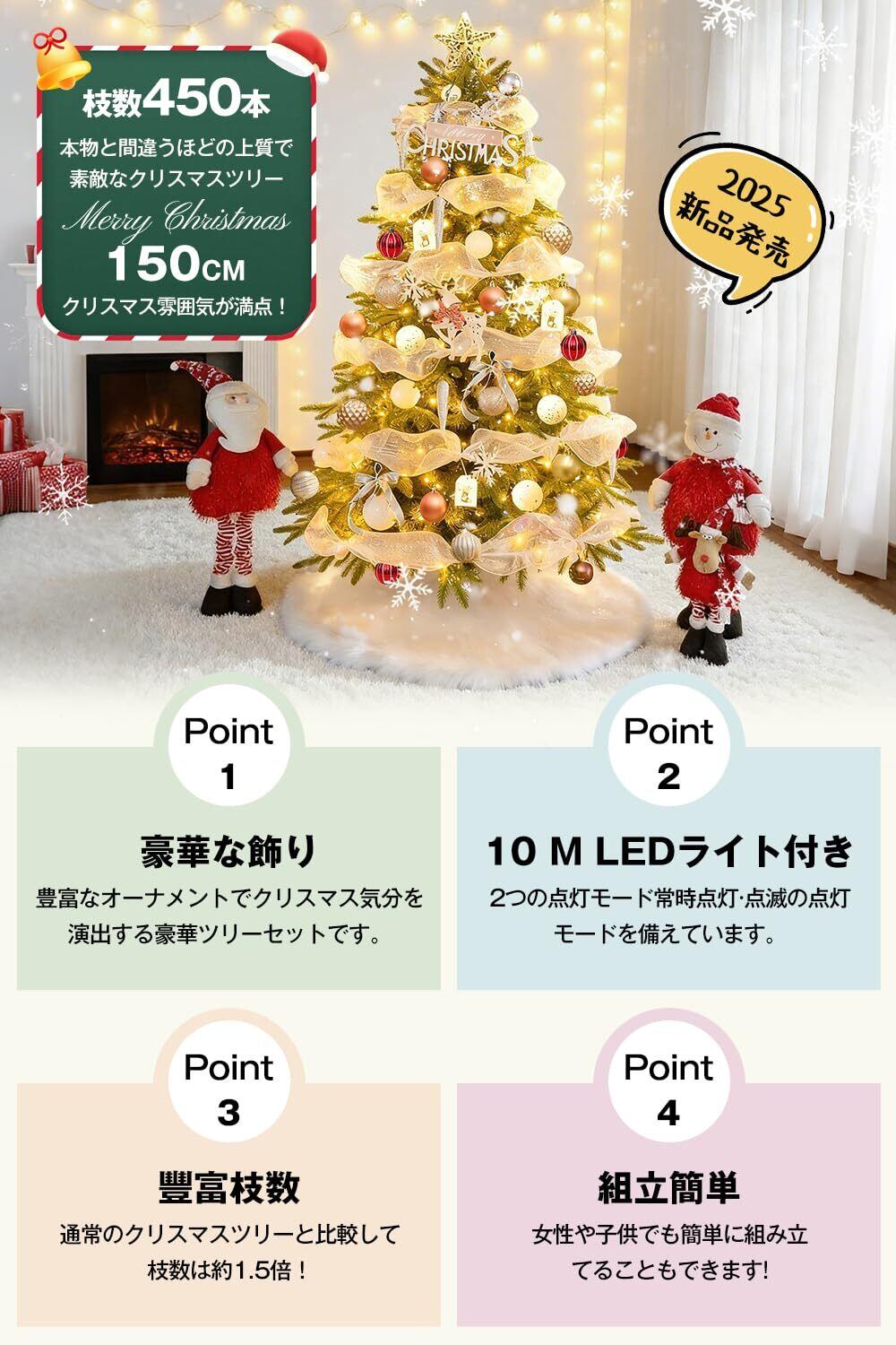 「クリスマスツリー 150cm」をお部屋に置いて、素敵なクリスマスの思い出を作りませんか?このツリーがあれば、毎年のクリスマスが特別な瞬間に変わりますので、ぜひご家族や大切な人々と一緒にお楽しみください!