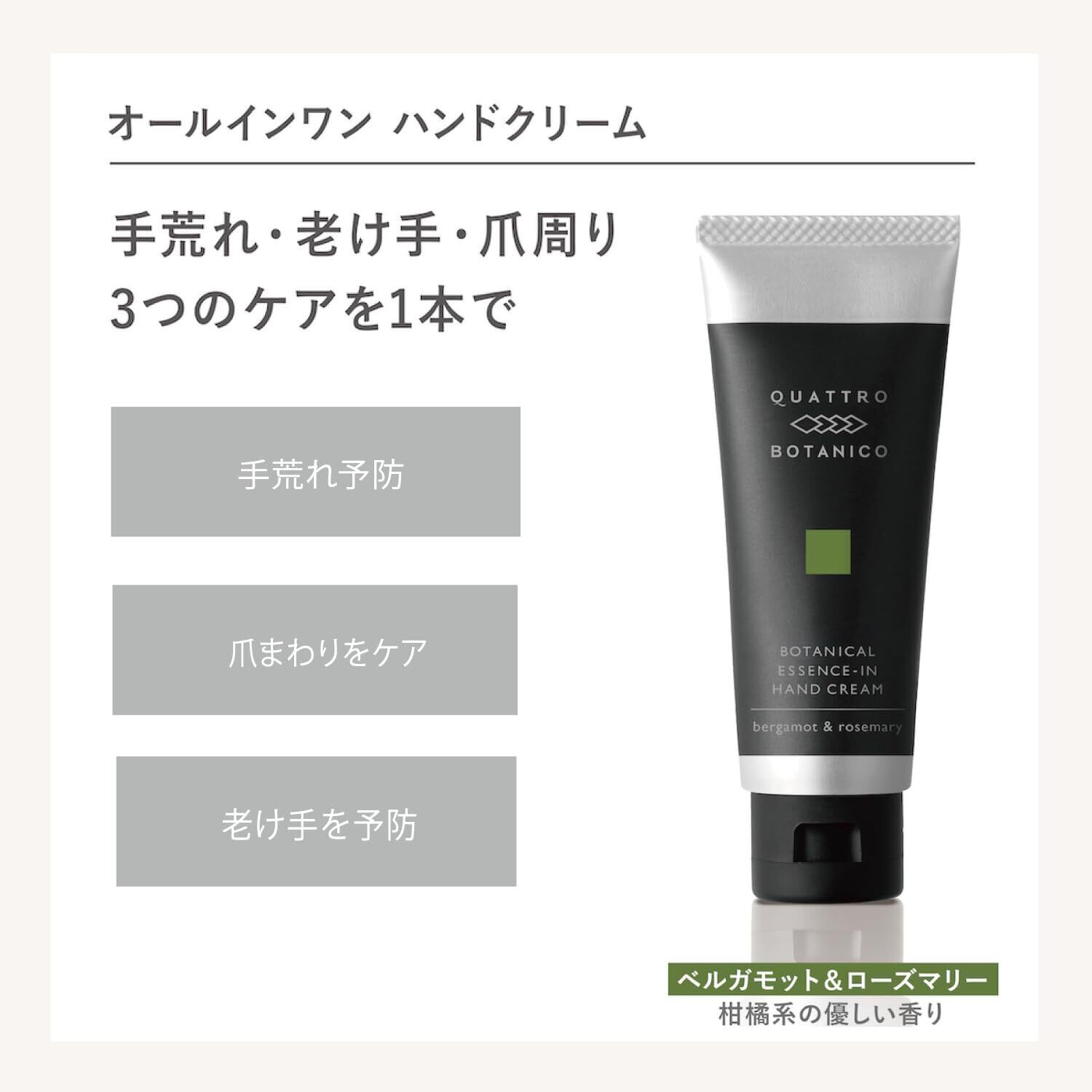 クワトロボタニコ ハンドクリーム メンズ レチノール配合 手荒れ ボタニカル エッセンスイン ハンドクリーム 45g 柑橘系 ベルガモット & ローズマリーの香り ハンドケア 無添加 べたつかない 保湿 エイジングケア 男性 女性 プレゼント ギフト