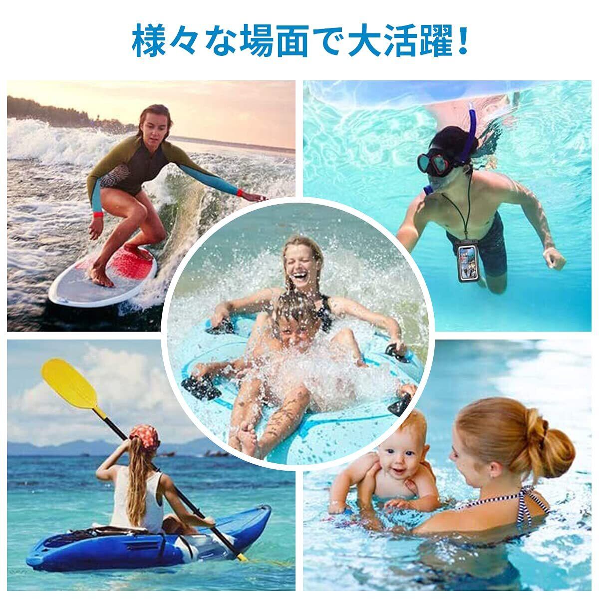【最新TPU素材でタッチ快適】従来品と違って弊社の携帯防水ケースは最新改良素材TPU素材を採用し強度&透明度&感度がアップ!iPhone・Android問わず、ケースにいれたまま濡れた手でも指紋認証、タッチパネル操作や通話などことが可能です。両面透明、クリアな大画面でプール、海の水中での撮影や鑑賞に最適!水中撮影も楽々!注意水中でまたは指は濡れている時、指紋認証ができない場合がございますが、顔認証でや、サイトボタンを押してからパスコードの入力されることで起動してください。
