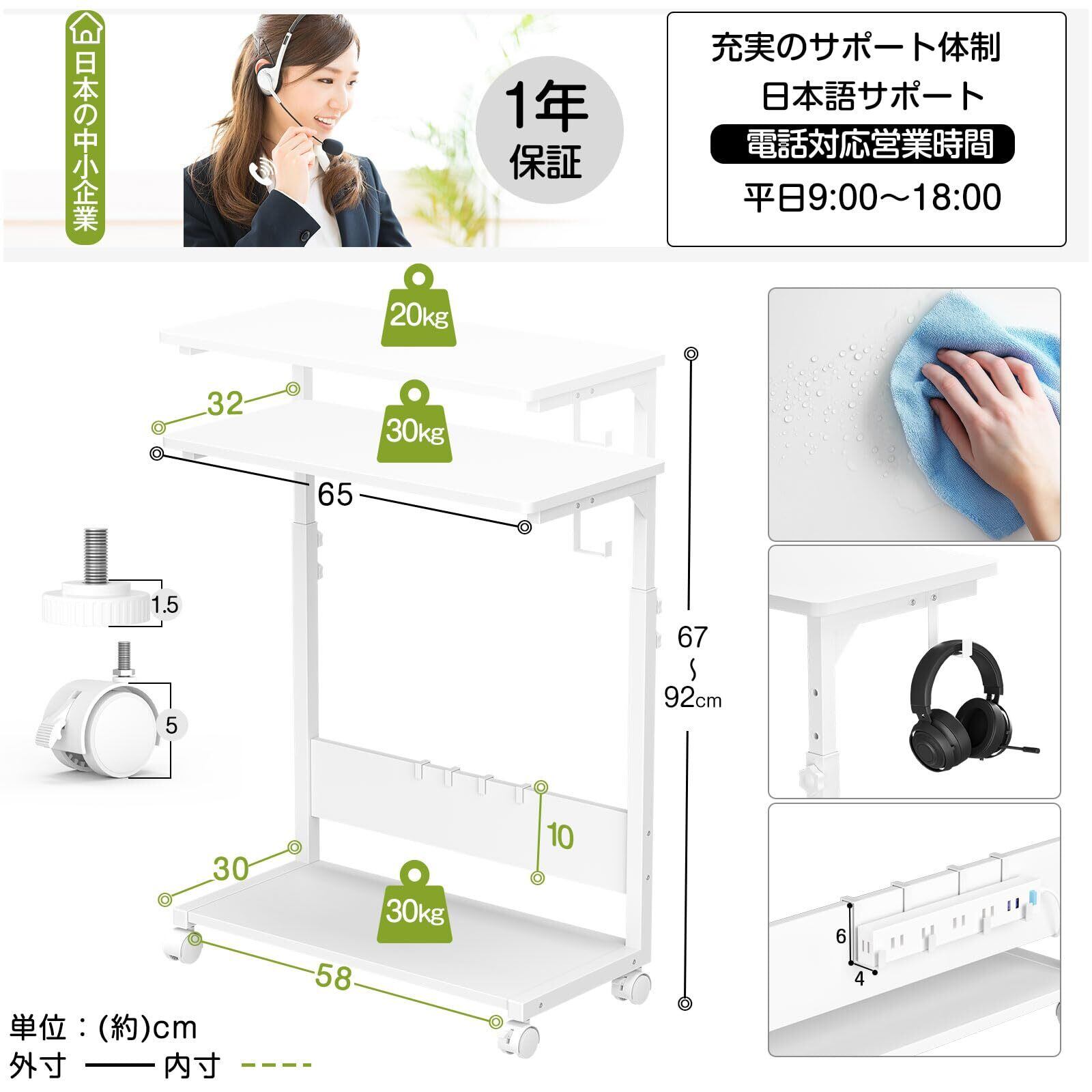 pcラック 昇降式 ガレリア ゲーミング pc ワゴン 幅65×奥行32×高さ67~92cm パソコンラック キャスター付き 高さ調整可能 デスクトップ cpuスタンドサイドワゴン置き台 複合機 PCラック サイドデスク・L字デスク・プリンター台 アジャスター・キャスター付き (ホワイト)