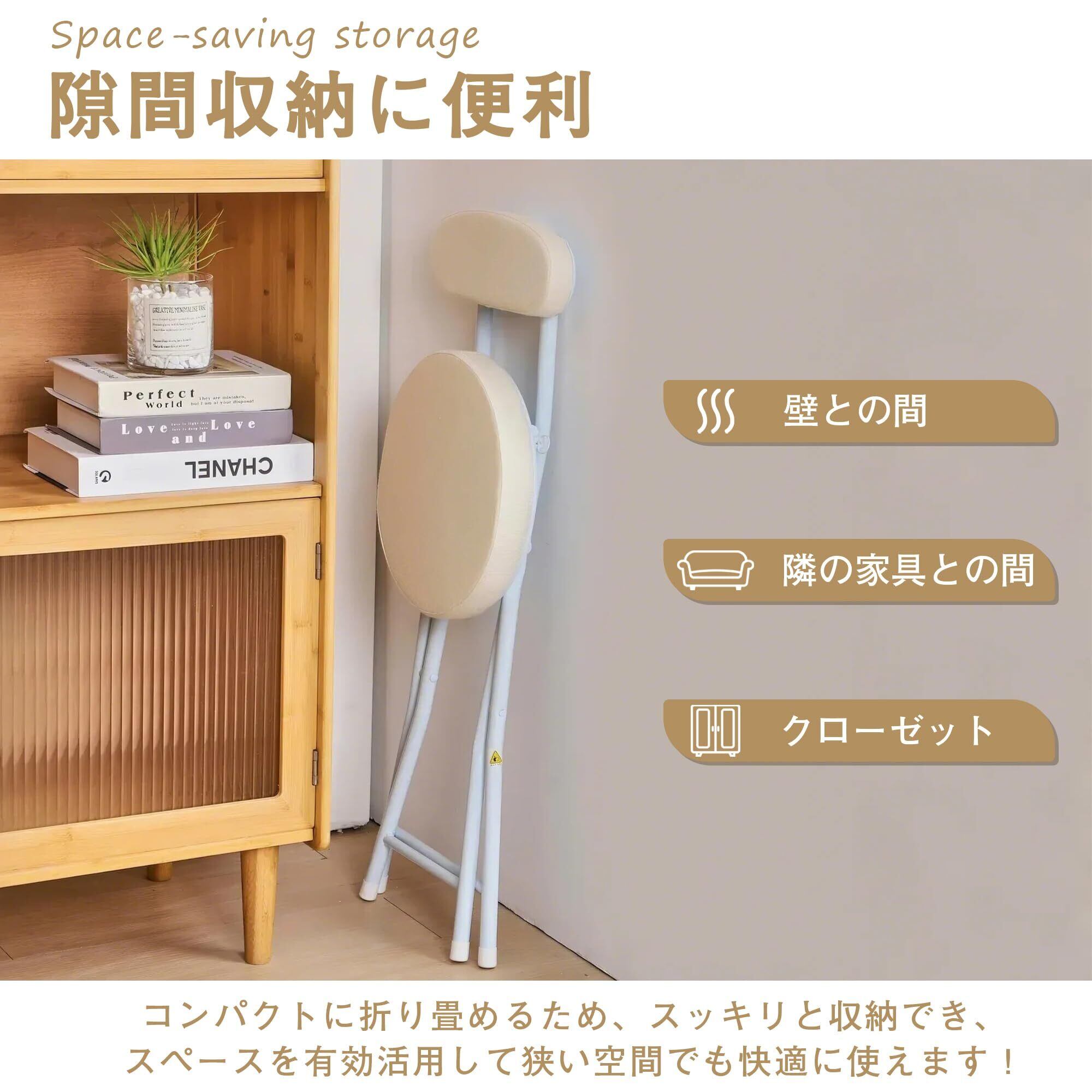 VECELO 折りたたみチェア パイプ椅子 折り畳み 背もたれ スリム 軽量 持ち運び 完成品 組立不要 座面高48cm 耐荷重100kg ファブリック ベージュ
