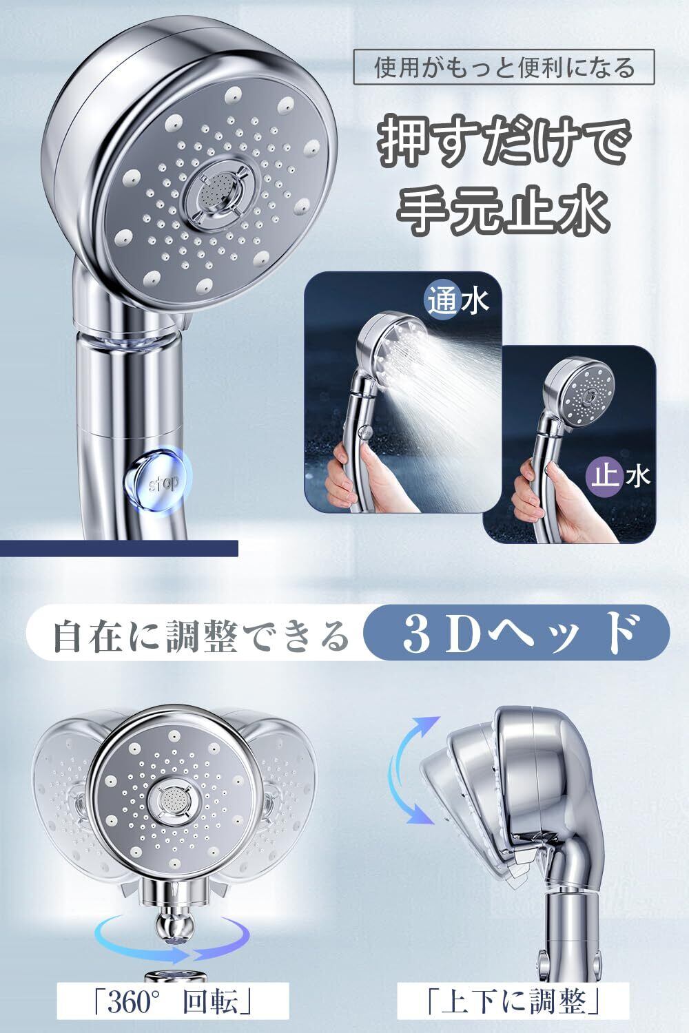 シャワーヘッド マイクロナノバブル ミスト シャワー 【2025革新・89%節水】 節水シャワーヘッド 高水圧 360°角度調整 & 上下60度の回転 3Dプレミアム 手元止水 高洗浄力 5段階水流 美髪 肌ケア 毛穴汚れ除去 シャワーヘッド 節水 保温 保湿 国際汎用基準G1/2 M/K/G/T 4種類アダプター付き 軽量 取付簡単 | Lulu