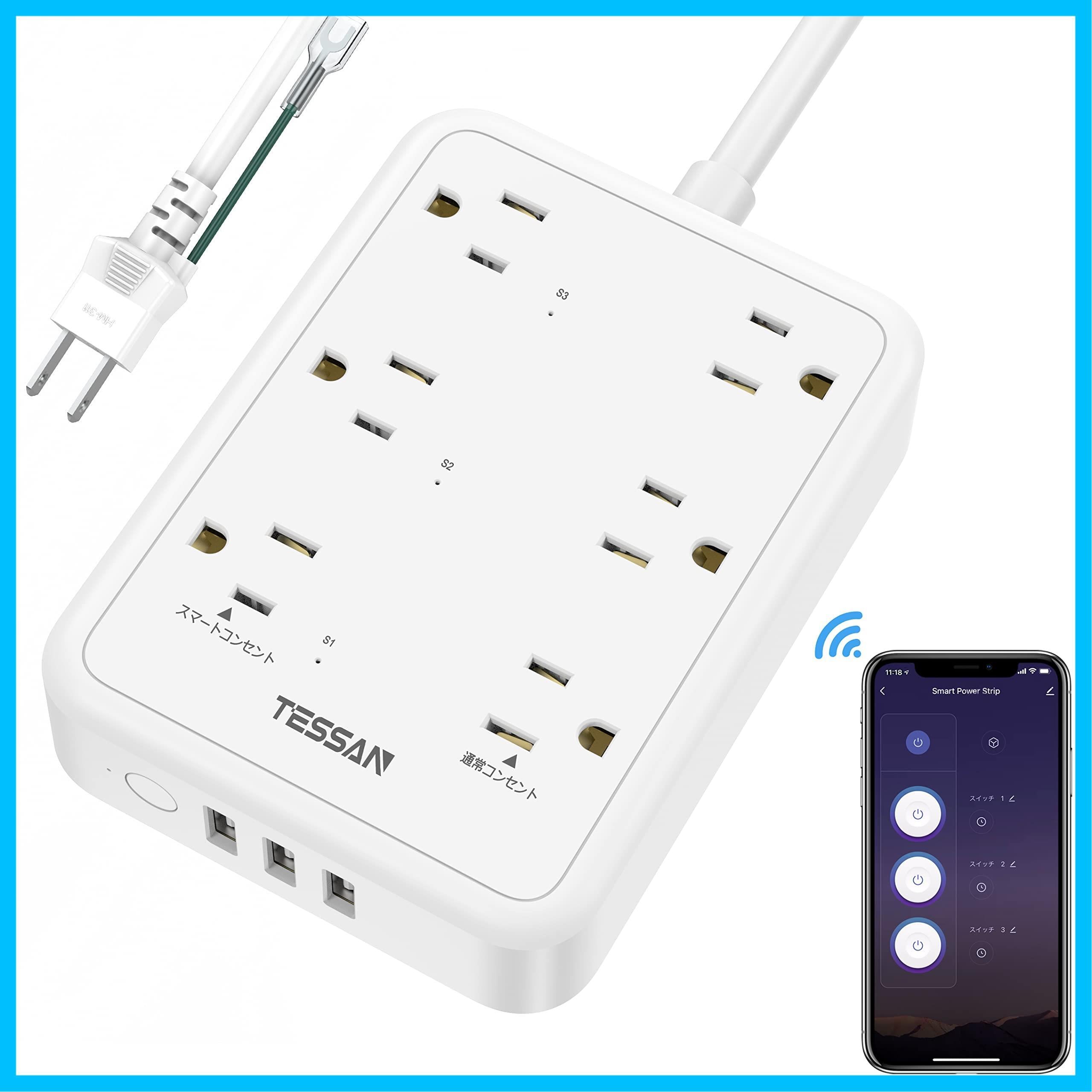 スマートプラグ TESSAN スマート電源タップ 3つスマートコンセント 3つ通常AC口 3つUSBポート 節電タップ タイマー付き コンセント 延長コード 2m WiFi 遠隔操作 音声コントロール Alexa Google Home 対応 ホワイト | Lulu