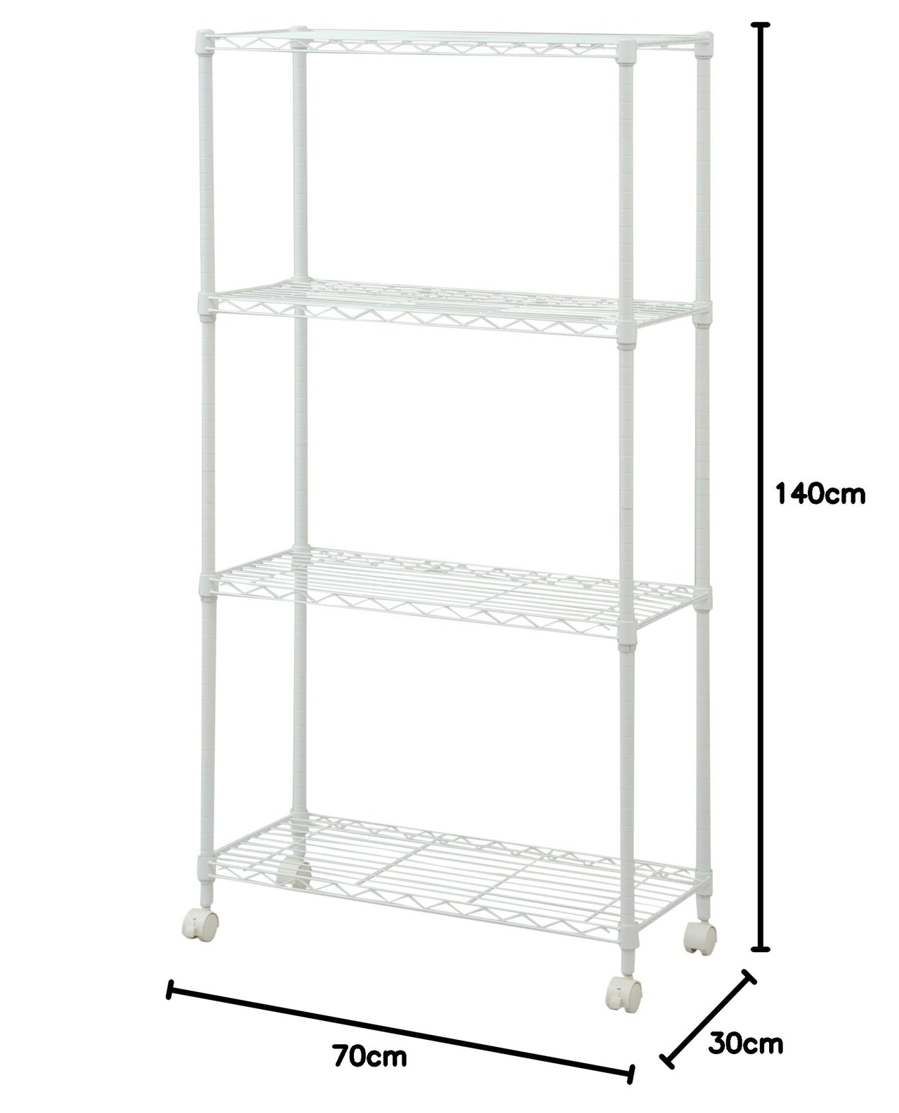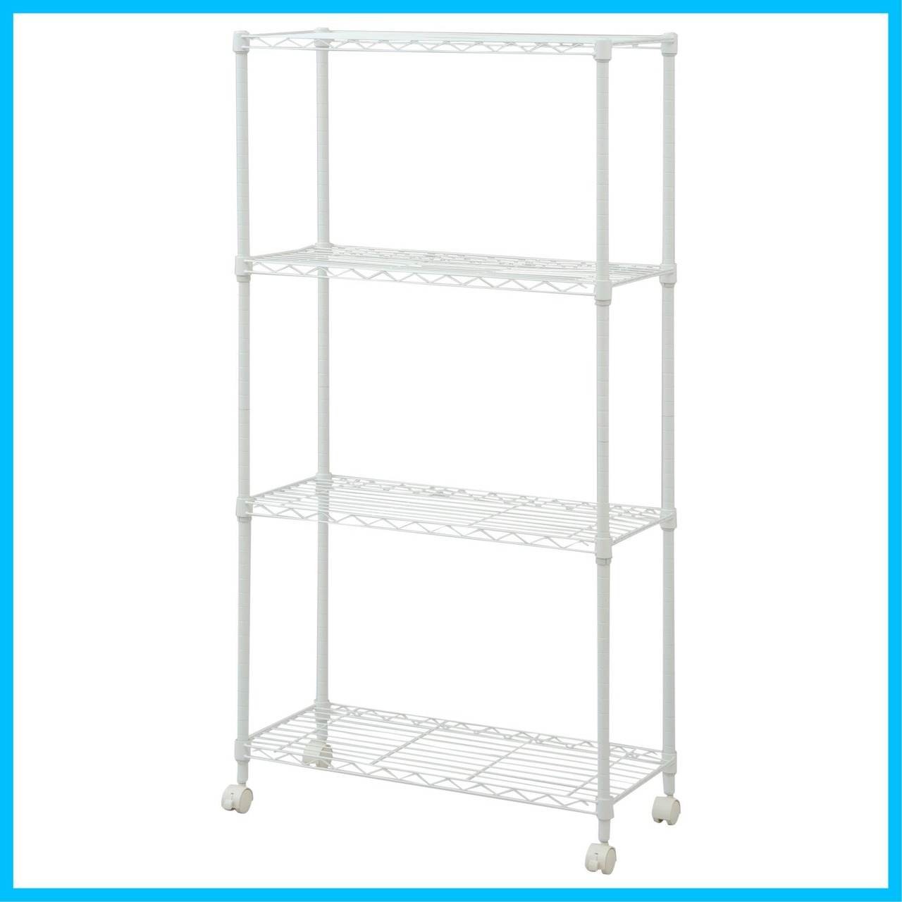 山善(YAMAZEN) スリムメタルシェルフ ホワイト (幅70棚) キャスター付き 4段 スチール RS-14734CJH(WH)