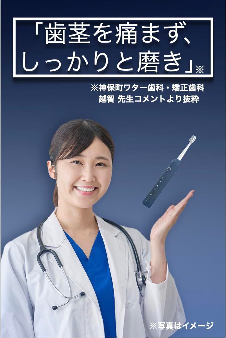 【抜群な高速音波技術採用 ・静音設計 ・IPX7防水】デュポン社製の極細毛ブラシを採用し、『ハイテク磁気浮上式モーター』を搭載し、高速音波振動と振幅でし歯垢をかき出して、歯間や歯ぐきの汚れをやさしく落とします。55dBの低ノイズ設計で、IPX7防水性能も持っており、シャワー中やお風呂でも安心してご使用可能な音波振動歯ブラシです。