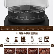 【操作簡単・自由な研磨調整】直感的な操作方法と使いやすいデザインで、誰でも簡単に使える咖啡研磨機です。タッチパネルやボタン操作により、瞬時に豆を挽き始めることができ、忙しい朝でも手軽に美味しいコーヒーを楽しむことができます。個々の好みや抽出方法に合わせて、研磨の粗さ、時間を自由に調整できます。エスプレッソ用の微細な研磨から、フレンチプレス用の粗めの研磨まで、幅広い調整範囲で理想のコーヒーを実現します。