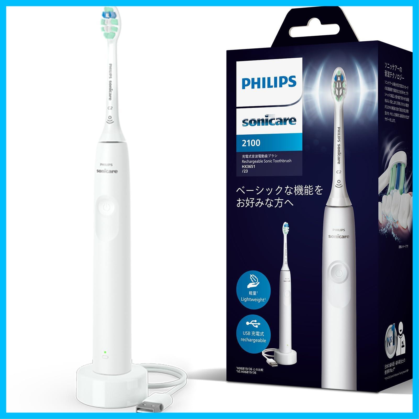 フィリップス 電動歯ブラシ ソニッケアー 2100シリーズ (軽量/USB充電式) HX3651/23 ホワイト 【限定・2024年モデル】