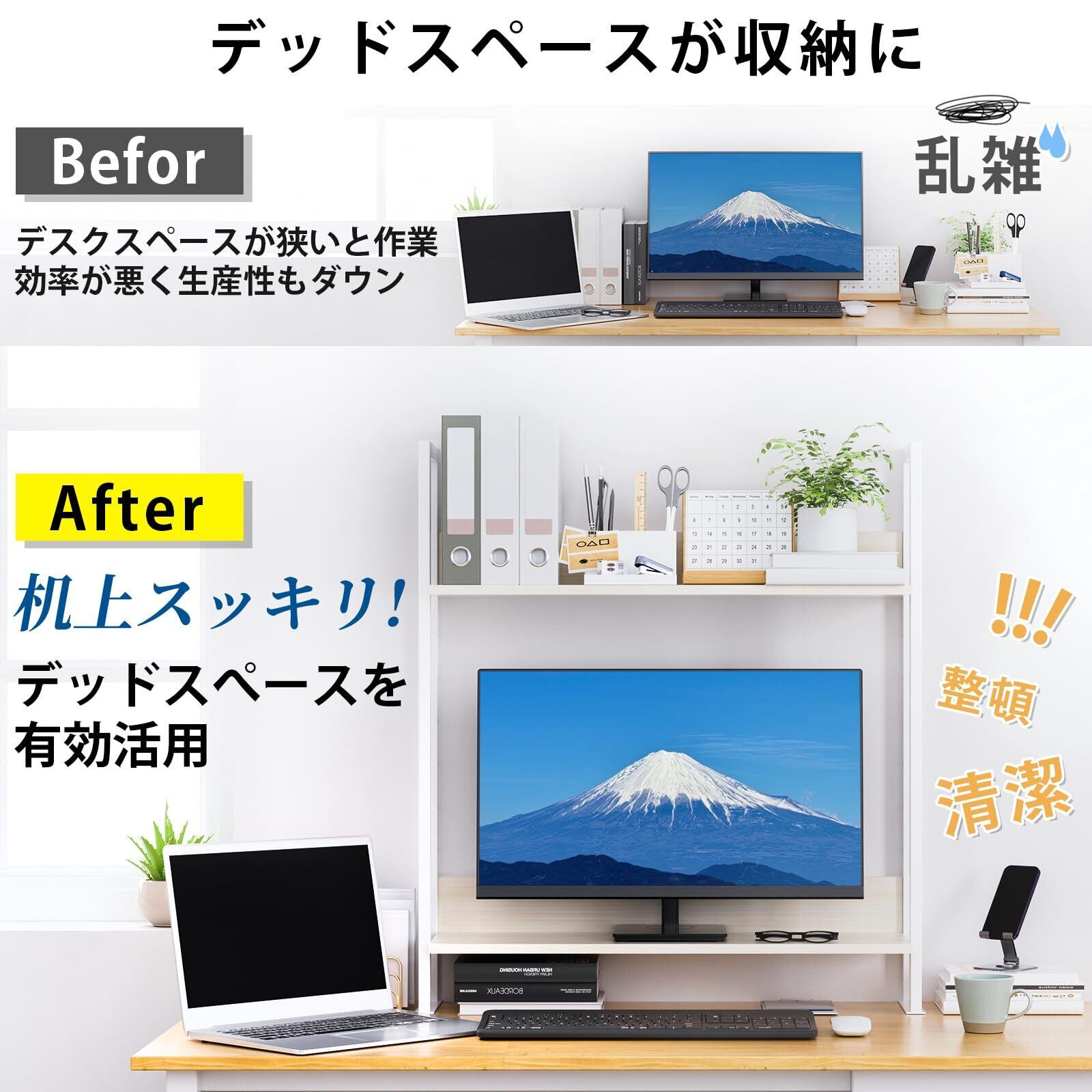 机上ラック クランプ式 2段 幅78*奥行22*高さ90cm デスク上 高さ調整 書類 ファイル 収納 デスクボード 後付け 取付簡単 モニター台 机上整理 ナチュラル オーク ホワイト | Lulu