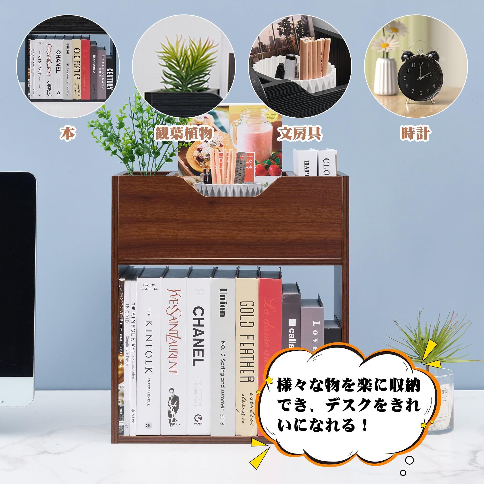 【大容量収納】多くの小物や本を効率的に整理できる大容量設計の卓上置棚です。デスク上のスペースを有効活用し、本、文房具、時計、観葉植物などの物を楽に収納でき、作業環境をすっきりと整えることができます。