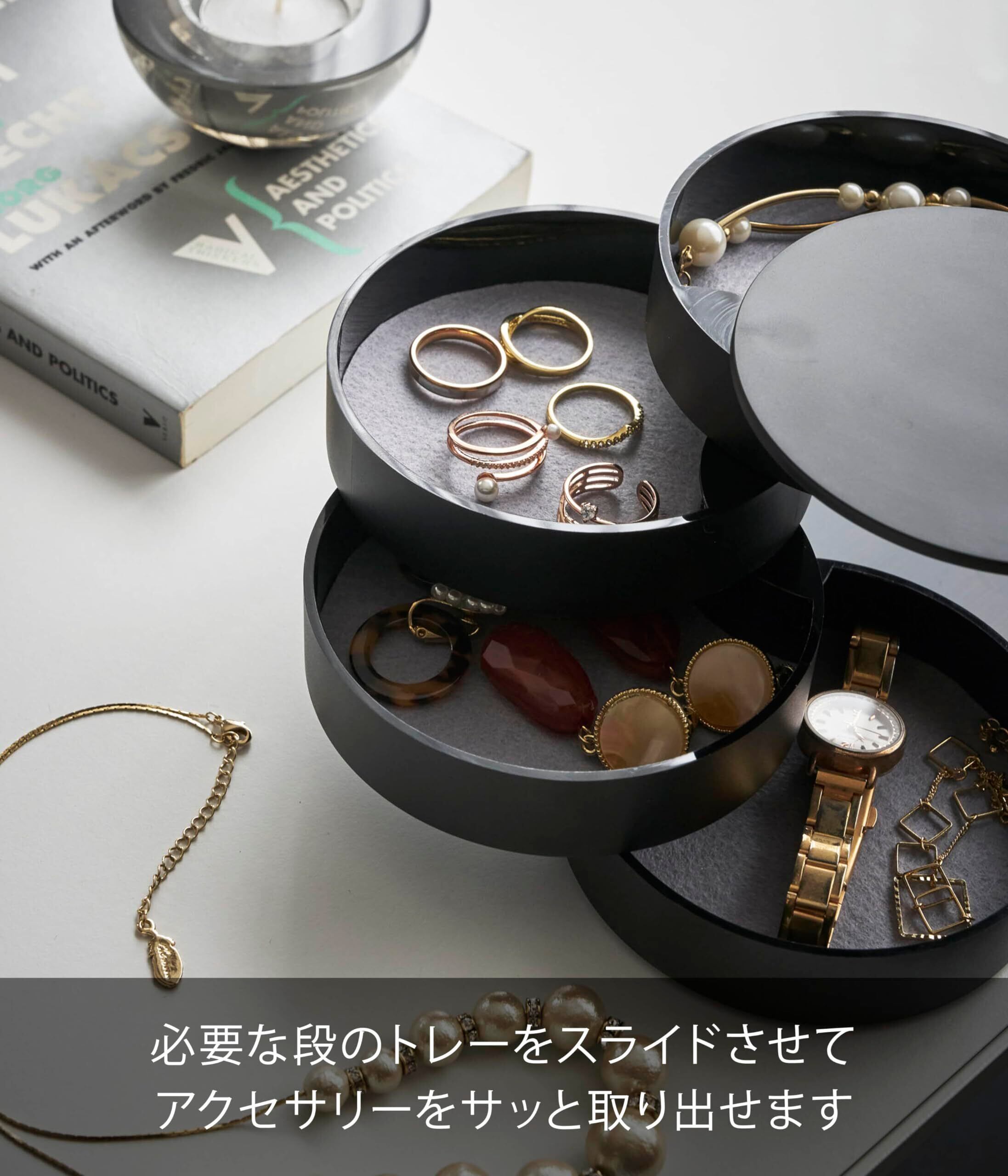回転式で取り出しやすい美しいフォルムのアクセサリートレー。