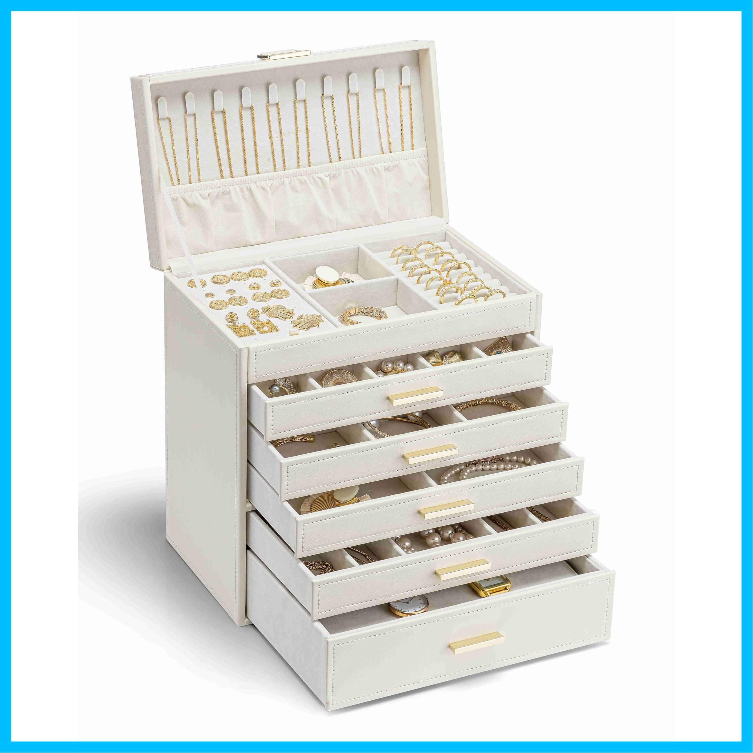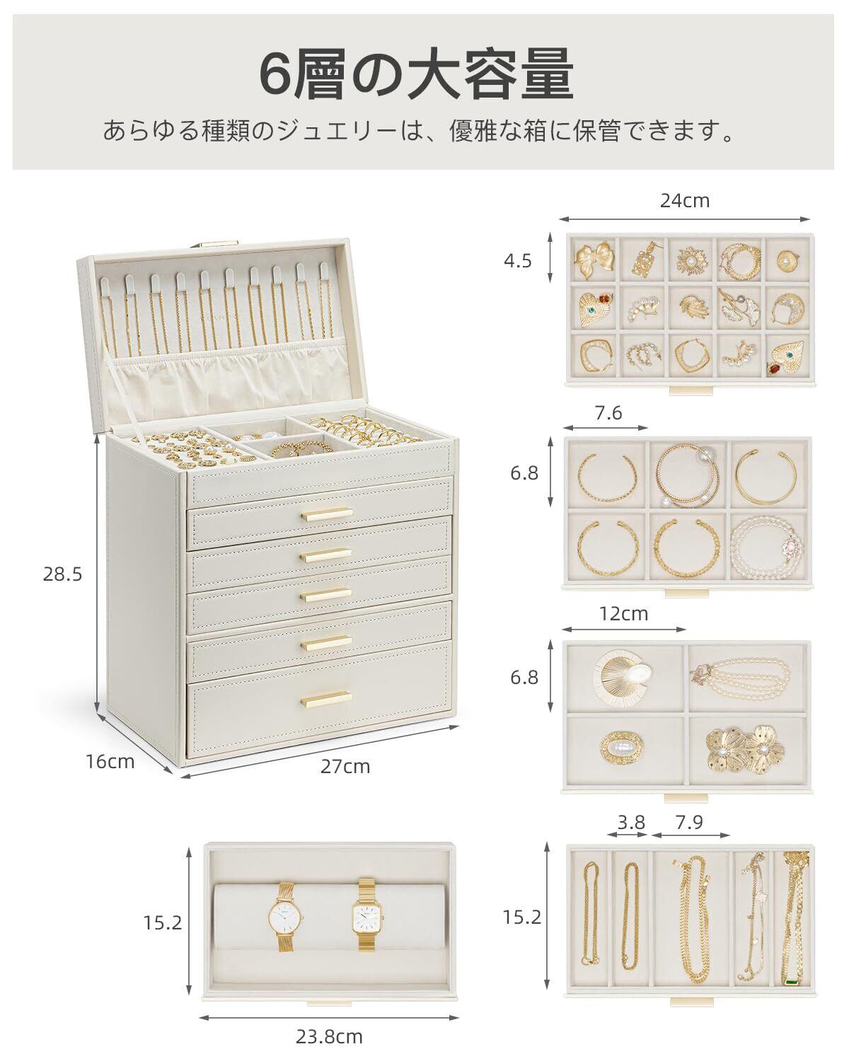 Vlando 大容量 ジュエリーボックス 6段式 引出し 小物入れ ピアス ネックレス 指輪 イヤリング 腕時計 収納 ケース(アイボリー)