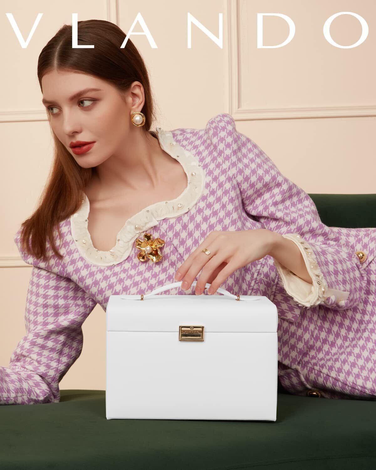Vlando ジュエリーボックス 誕生日プレゼント 収納 アクセサリーケース 大容量の宝石箱母の日スウィートなプレゼント ミラー 鏡付き ピアス ネックレス 指輪 リング アクセサリー 指輪置き ジュエリーバッグ プレゼント 女性 (5-ホワイト) | Lulu