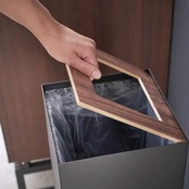 木目が美しいスタイリッシュな蓋付きトラッシュカン。