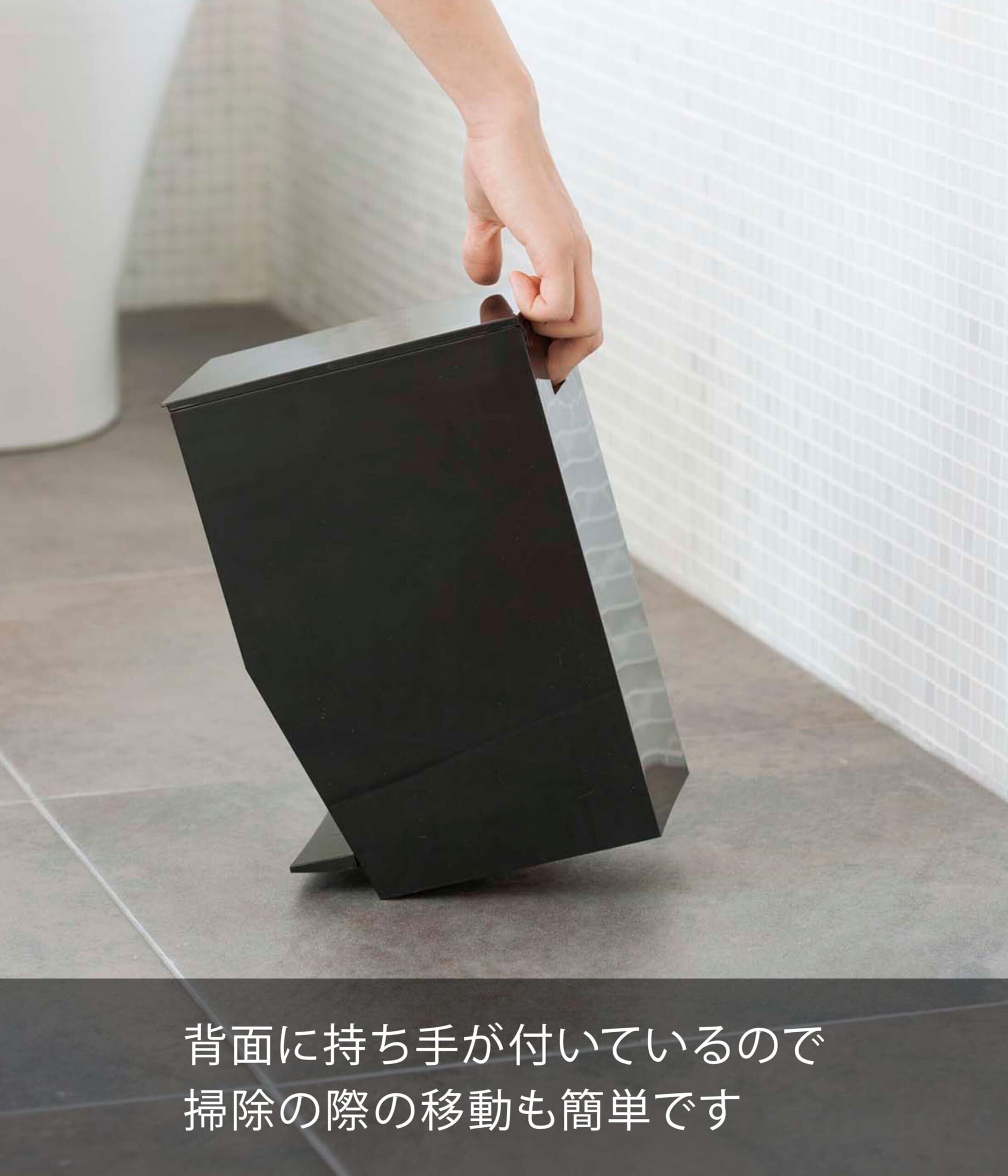 ペダルを踏んだ際の開口部は約70度開くので、ゴミが捨てやすく、背面に持ち手も付いているので移動も簡単です。