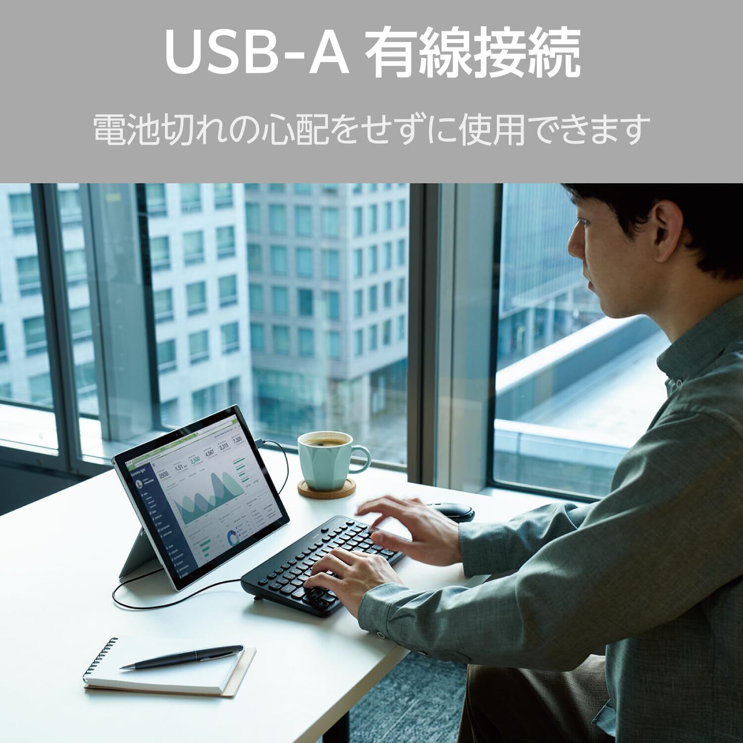 ■USBケーブルをパソコンにつなぐだけですぐに使用できる有線接続タイプです。