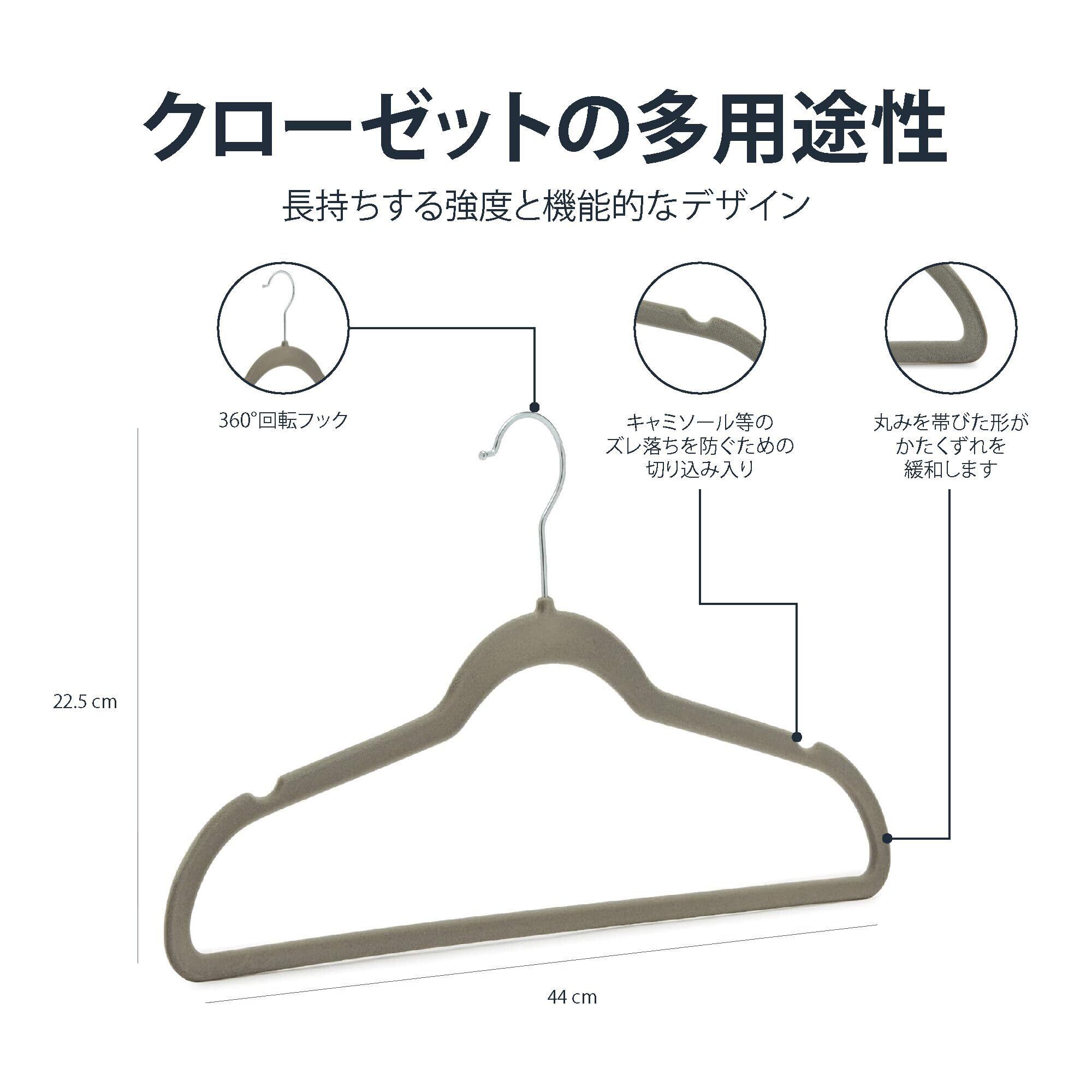 表面のベルベット素材と両肩部分のきりこみが衣類の落下を防ぎます。