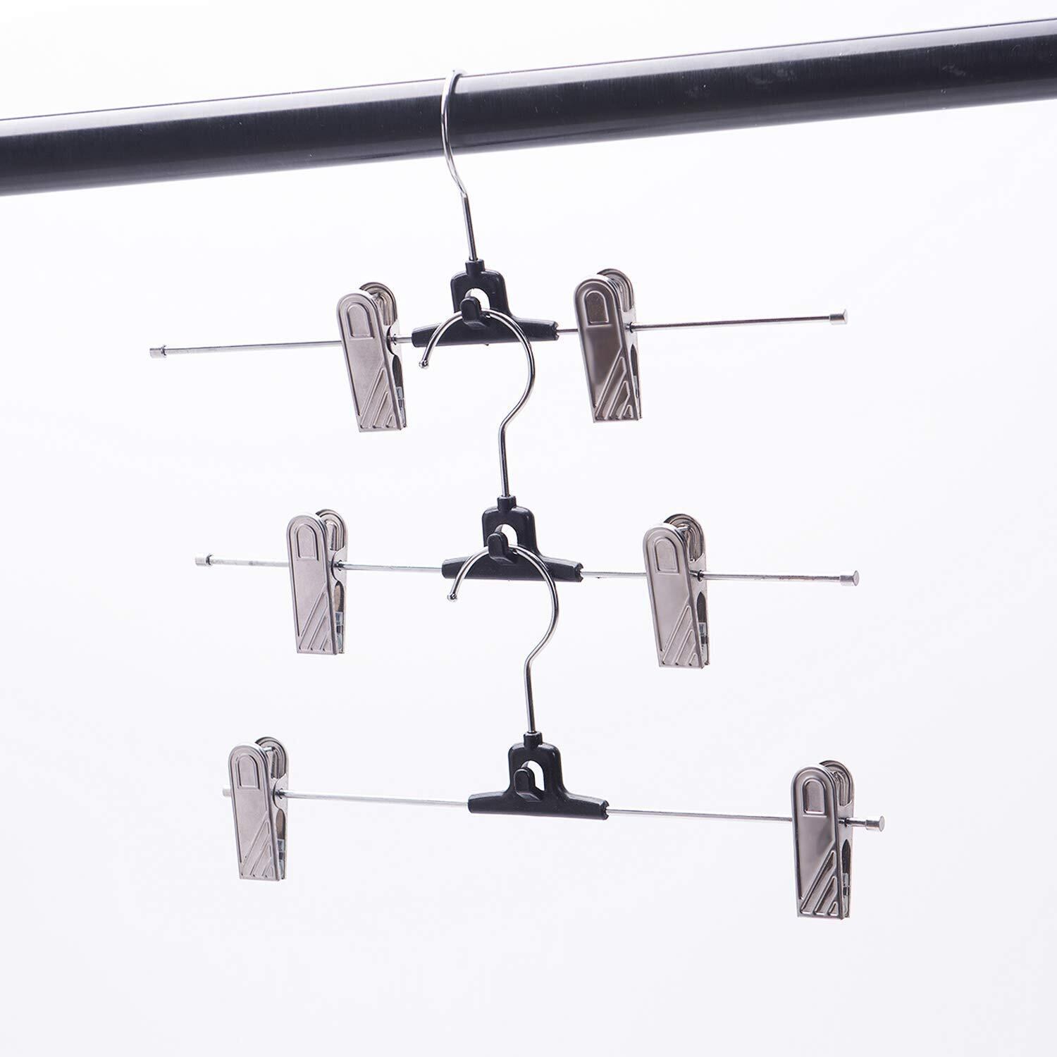 VEHHE ズボンハンガー マルチレイヤースタック可能スラックスハンガー 調節可能なクリップ2個付きスカートハンガー 360回転フック付きパンツハンガー 10本セット