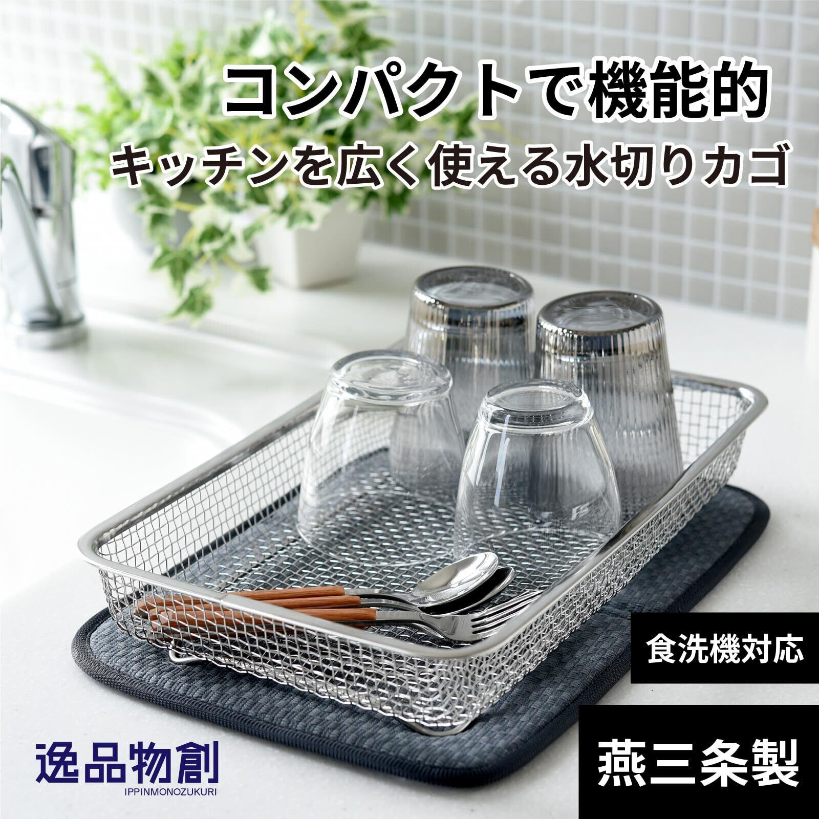 アーネスト 【日本製】 水切りかご ステンレス 小 すっきりコンパクト 野菜の水切りにも使える 食洗機対応 幅31.5×奥行20.5×高さ6cm (逸品物創 シンクを広く使える水切りカゴ) 大手飲食店愛用ブランド A-78074 燕三条