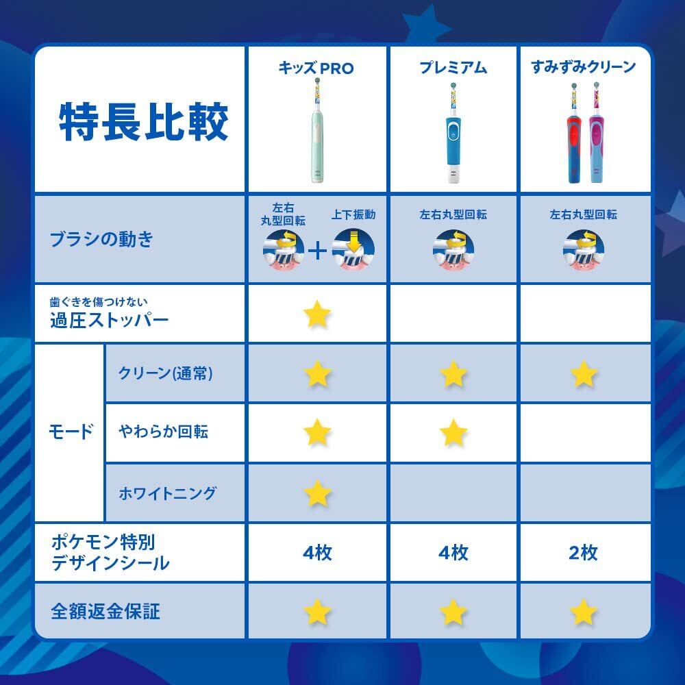 ブラウン 電動歯ブラシ オーラルB すみずみクリーンキッズプレミアム (子供用 ポケモン 歯ブラシ) D1004132KPKMBLE ブルー 【 限定】