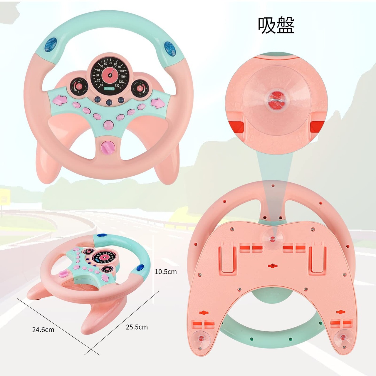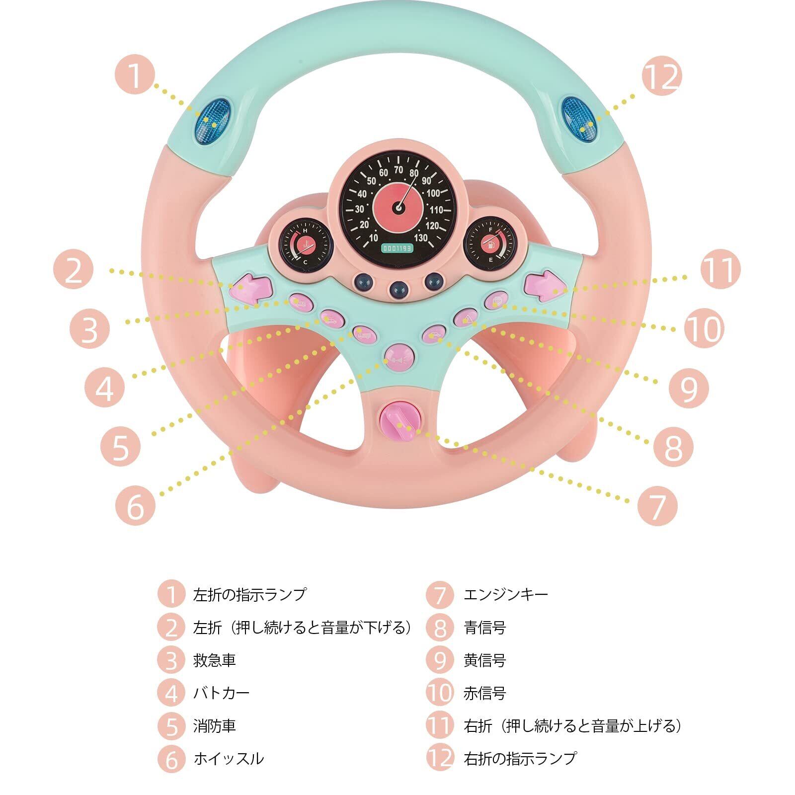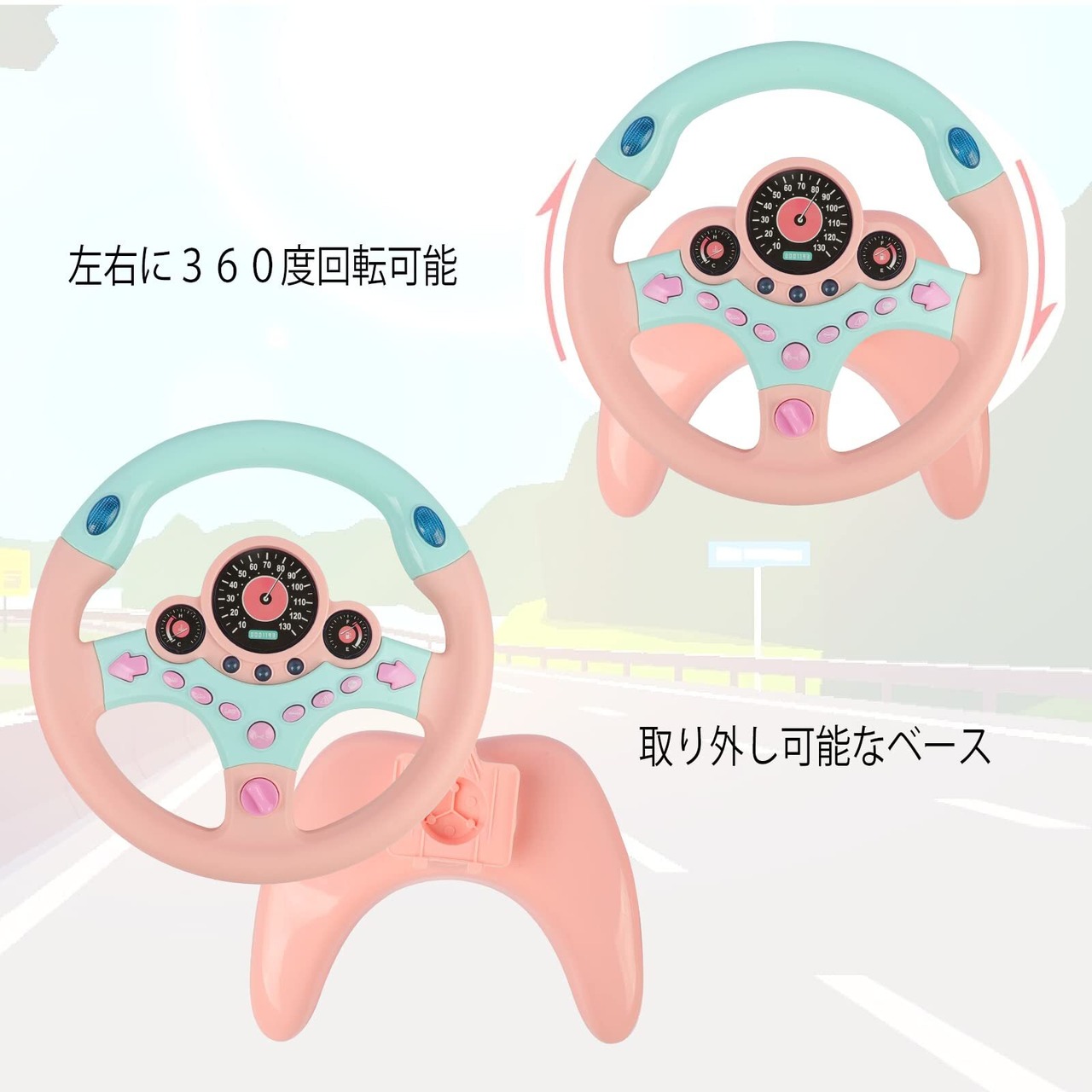 ハンドルおもちゃ 子供の車のおもちゃ ドライブハンドルおもちゃ 音量調整 子供 プレゼント 誕生日 日本語説明書付き 英語発音6+ (ピンク)