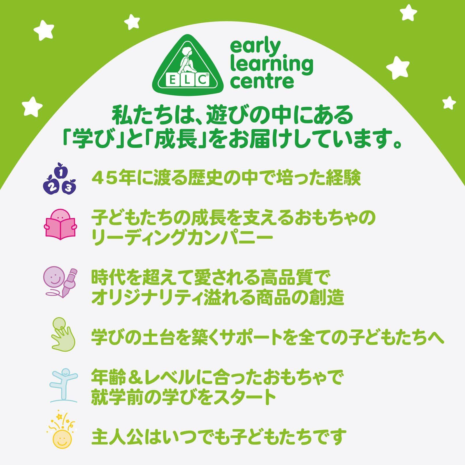 アーリーラーニングセンター (Early Learning Centre) は、約50年の歴史を持つイギリスの幼児用玩具専門メーカーです。遊びを通して子どもたちの学習と発達をサポートするおもちゃを世界50ヵ国以上で展開しています。