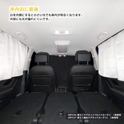 本製品は白黒リバーシブル仕様。車内側を白面にすると照明を反射して明るく快適に、黒面にすると仮眠時に安眠できる落ち着いた空間に。