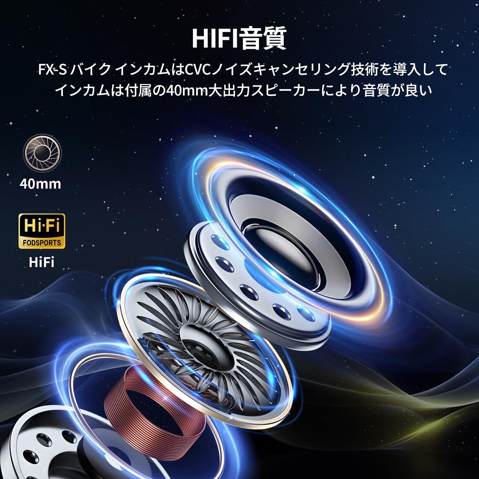 【CVC騒音抑制技術&素敵なHIFI高音質&40mm高性能ステレオスピーカー】バイク インカム FX-S はCVCノイズキャンセリング技術を導入して、防風マイクにより通話エコーを除去し、エンジン騒音や風切音等のノイズを減らします。相手と通信の時に、イヤホンからの音もはっきりと聞き取りやすいです。さらにインカムは付属の40mm大出力スピーカーにより音質が良くて、高速走行中でも相手からの声や携帯電話からの音楽などが鮮明に聞こえます。