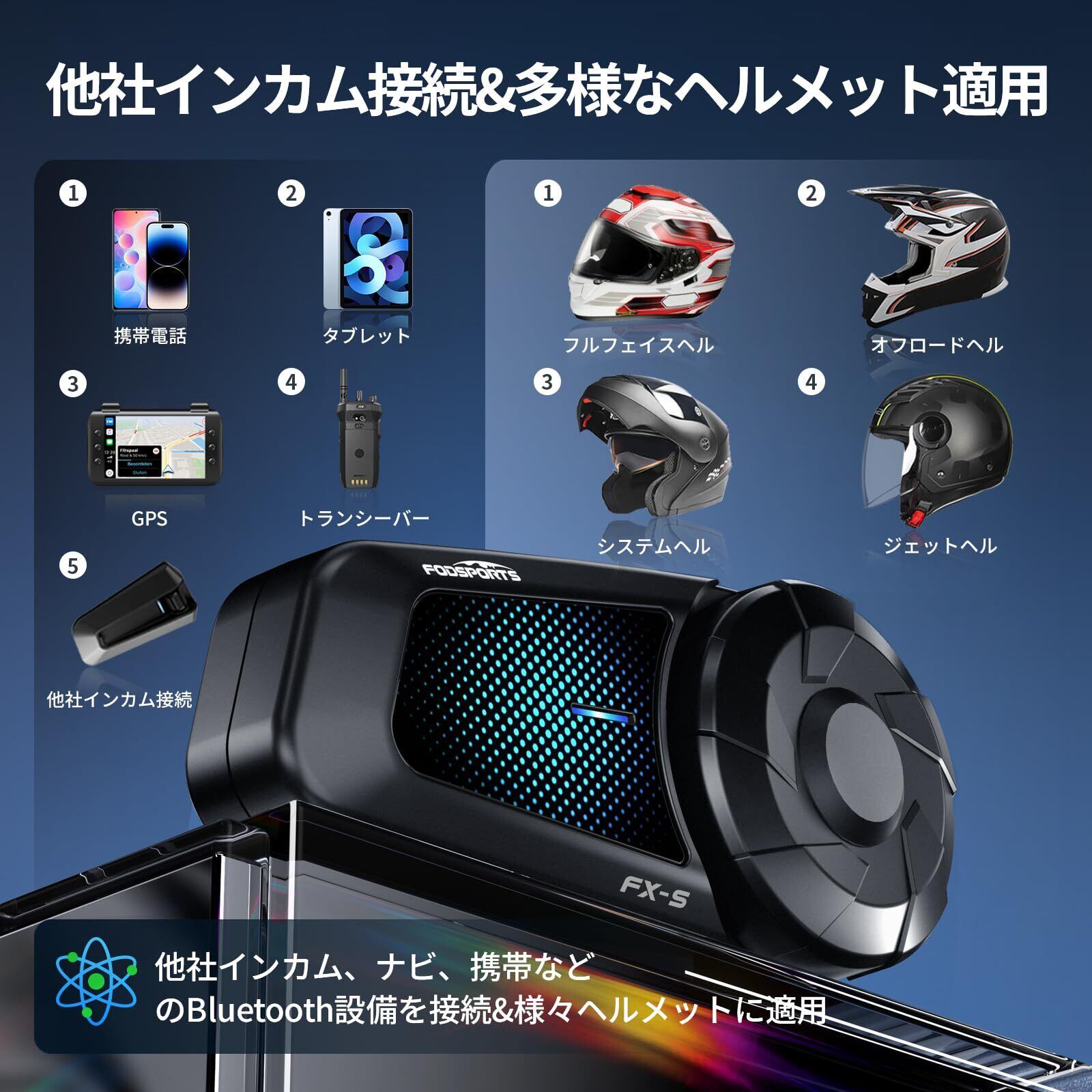 FODSPORTS バイク インカム FX-S インカム Bluetooth5.4 充電ながら使用 2人同時通話 インカムバイク用 通信機器 最大通話距離1000M 40mmヘルメットスピーカー 通信自動復帰 HIFI音質 バイク用無線機 いんかむ 他社インカム接続可能 インターコム ヘッドセット IP67防水 音声コマンド Siri対応 Type-C充電 技適認証済み 日本語説明書 (1台) | Lulu