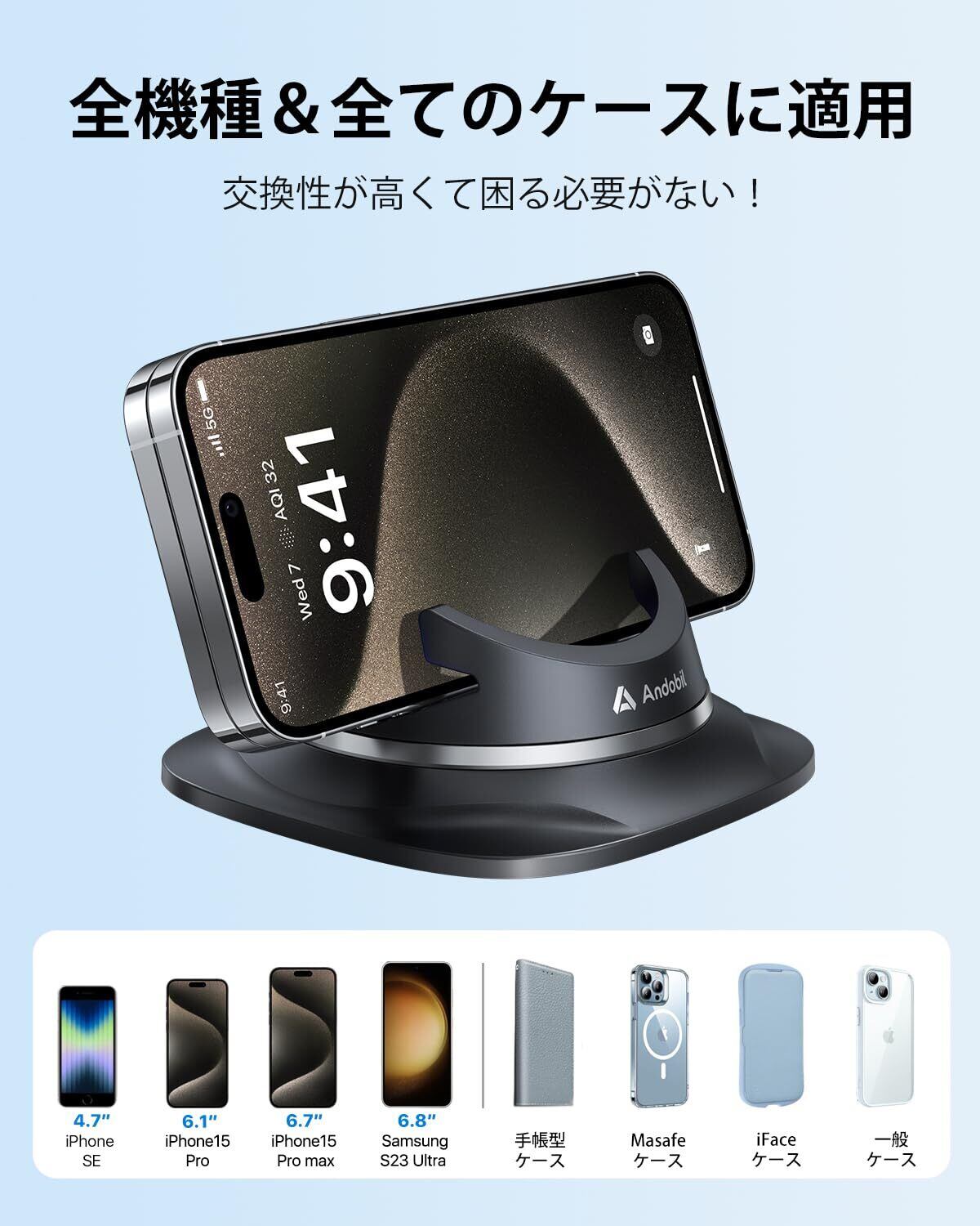 【2025最強型&ドライバー推奨】 Andobil スマホホルダー 車 置くだけ スマホスタンド 車 【強力な粘着パット&業界①のクリップ力】 角度調整可能 車載スマホホルダー 手帳型ケース対応 シリコン製 滑り止め 携帯ホルダー 車 脱着簡単 車載 車用 スマホホルダー iPhone 15 14 13 12 Pro Max Android対応 レンタカー シェアカー 全車種対応