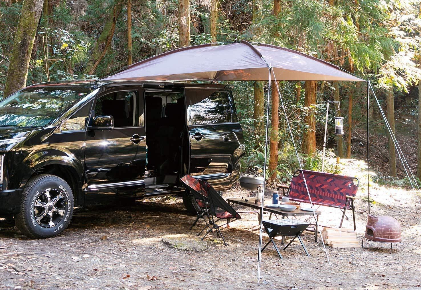 車中泊やアウトドアで簡単に広々とした居住空間が確保できます。