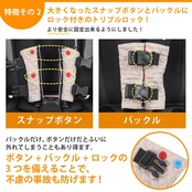 【ご好評いただいた商品の最終アップデート版!】バックルにロックをつけ、ボタンを大きいサイズにしたことで、チャイルドシートからの抜け出しがしにくく、末永くお使いいただける商品になりました。