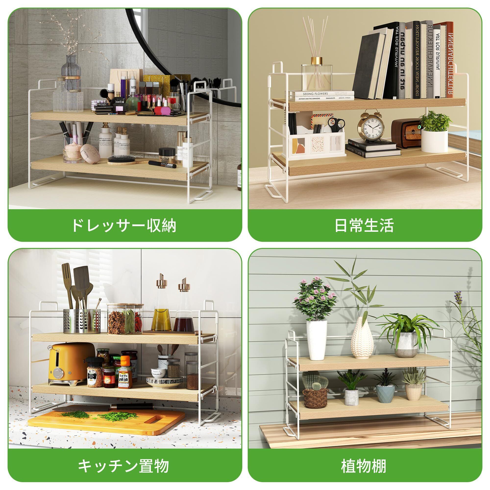 rloao オープンラック 本棚 デスク収納 2段 デスク上置き棚 卓上ラック 幅37×奥行16.5×高さ24cm デスク上収納ラック本棚 可動式 折りたたみ 机上ラック 木製 組み立て簡単 焼き漆細工 北欧風 ラック 卓上 矩形 安全の丸い角 安定した構造 小さなデスクトップシェルフ(原木の色+白いフレーム 棚板2枚) | Lulu